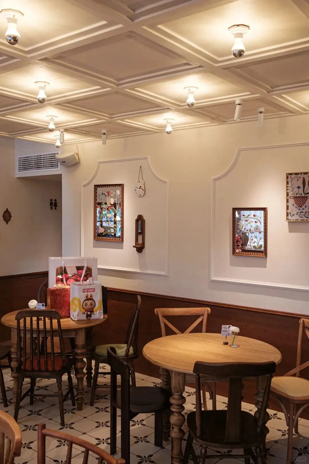 店里暖黄色的木质风格到处都是星星人的元素走进去就让人心情很好店不大但分成前后两部分每个角落都布置得用心