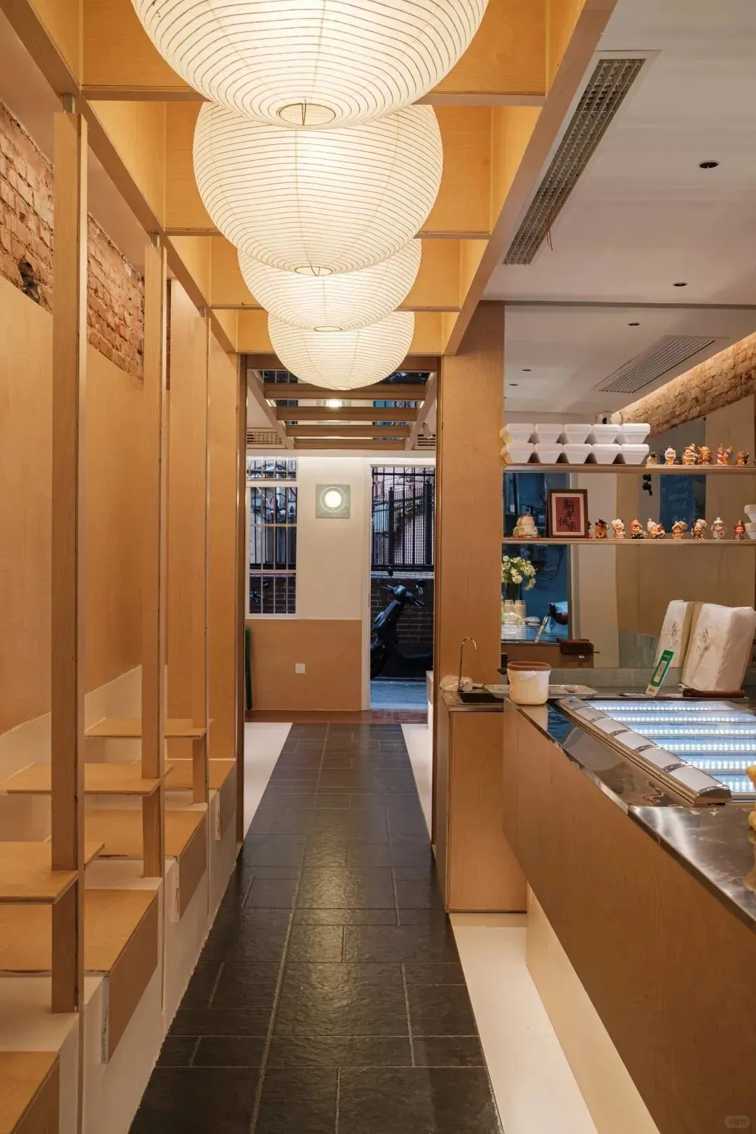 到处都是温润的木质结构门头就很可爱