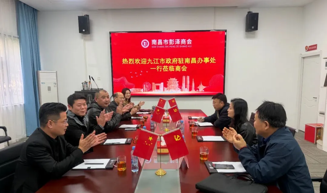 近日,为进一步加强与在昌浔籍商会的联络交流,推动“双招双引”工作走深走实,九江市政府驻南昌办事处党组成员、副主任刘芳率队走访南昌彭泽商会及其会员企业,并与商会主要班子成员开展座谈交流。