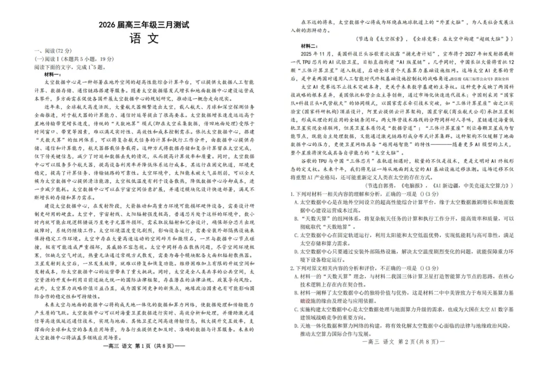备考关键!【南昌一模】南昌市 2026 届高三 3 月测试及参考答案,把握节奏,为高考复习助力。