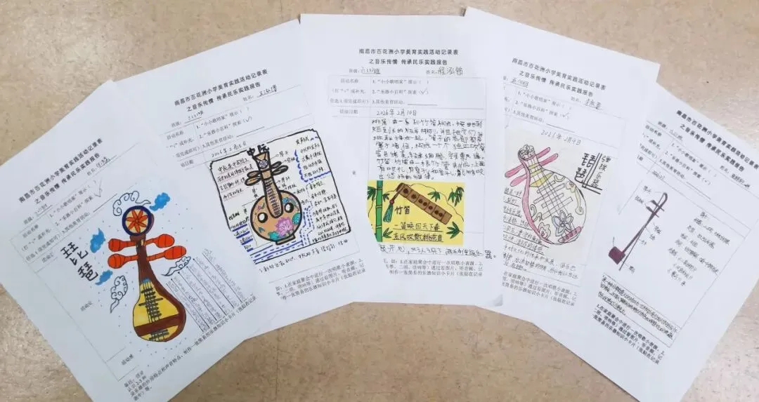 音乐学科以美育浸润为核心,设置两大趣味实践板块。“小小歌唱家”活动中,同学们化身家庭舞台主角,用清亮童声传递美好情感,以歌声传递孝心、传递年味;“认识中国传统民族乐器·制作乐器小卡片”任务中,同学们自主查阅资料,走近古筝、二胡、琵琶、竹笛、锣鼓等经典民族乐器,深入了解乐器的起源、形制特点、音色与代表曲目,并通过绘制、剪贴、书写等方式,制作出一张张图文并茂、设计精美的民族乐器知识小卡片。此次实践,既锻炼了学生动手实践和创造能力,又在探究中增长民乐知识,提升审美素养,让音乐之美伴随学生成长,让民族文化代代相传。