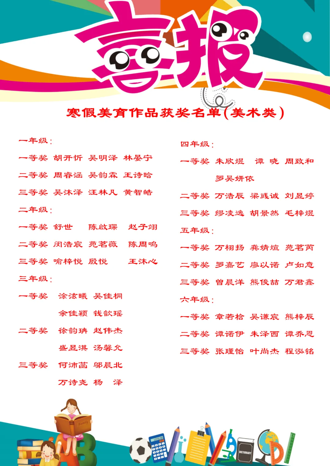 此次寒假美育作品评比活动,不仅为全体学生搭建了展示自我、释放创意、交流学习的艺术平台,更推动美育教育从校园延伸至假期生活,让学生在沉浸式实践中传承中华优秀传统文化,提升审美情趣与艺术修养。今后,学校将持续深耕美育教学,不断丰富美育活动形式,坚持以美育人、以文化人,助力学生全面发展,让艺术之花在校园绚烂绽放。