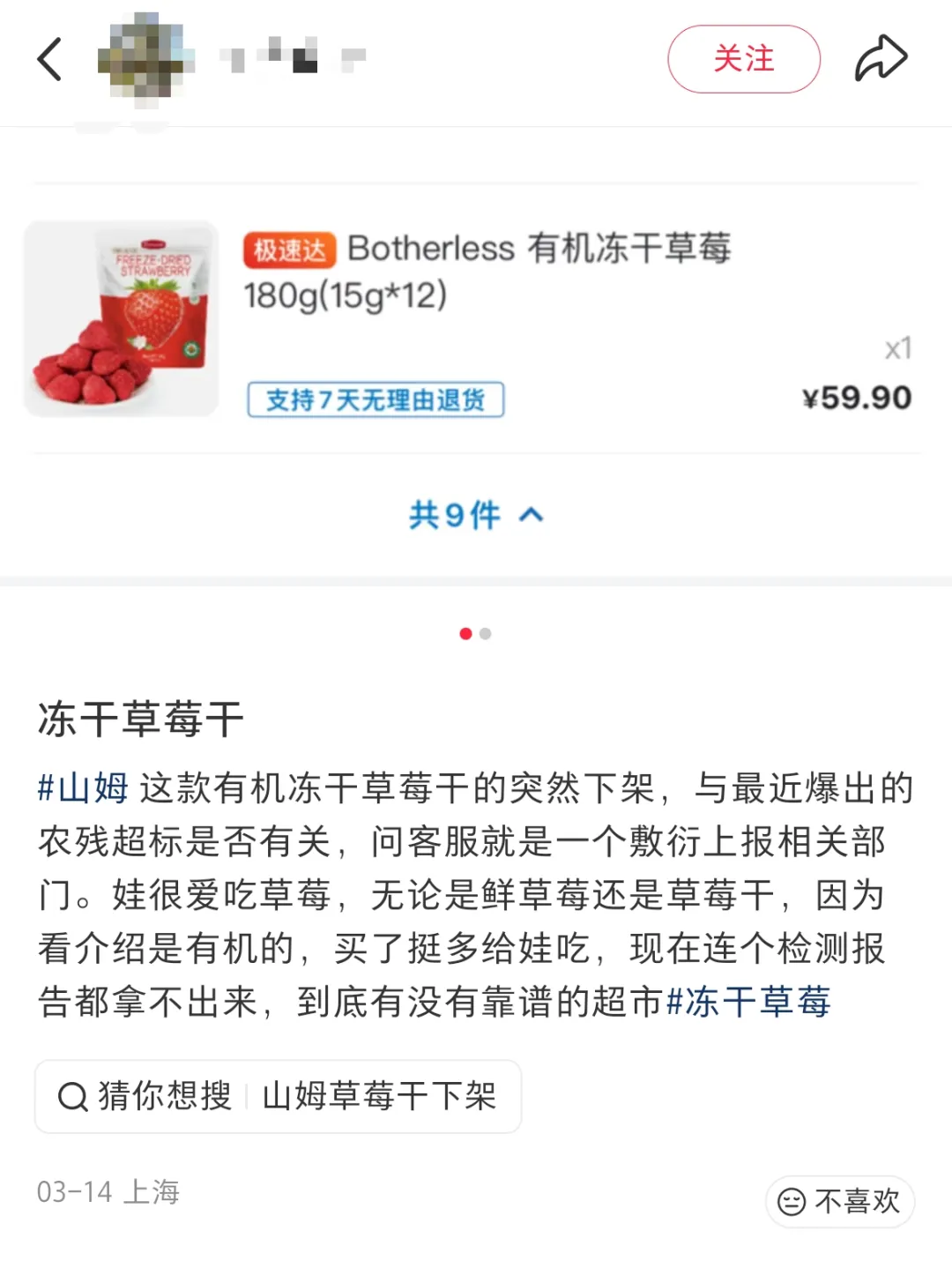 对此有网友去看了看这款草莓的生产厂家,叫福建立兴食品股份有限公司。之前有个林女士买的冻干草莓被测出农残和重金属超标,在那份名单里,生产商也是这家公司。去问山姆那边,客服站出来说要把情况反馈给部门,现在山姆已经把这款草莓给下架了。