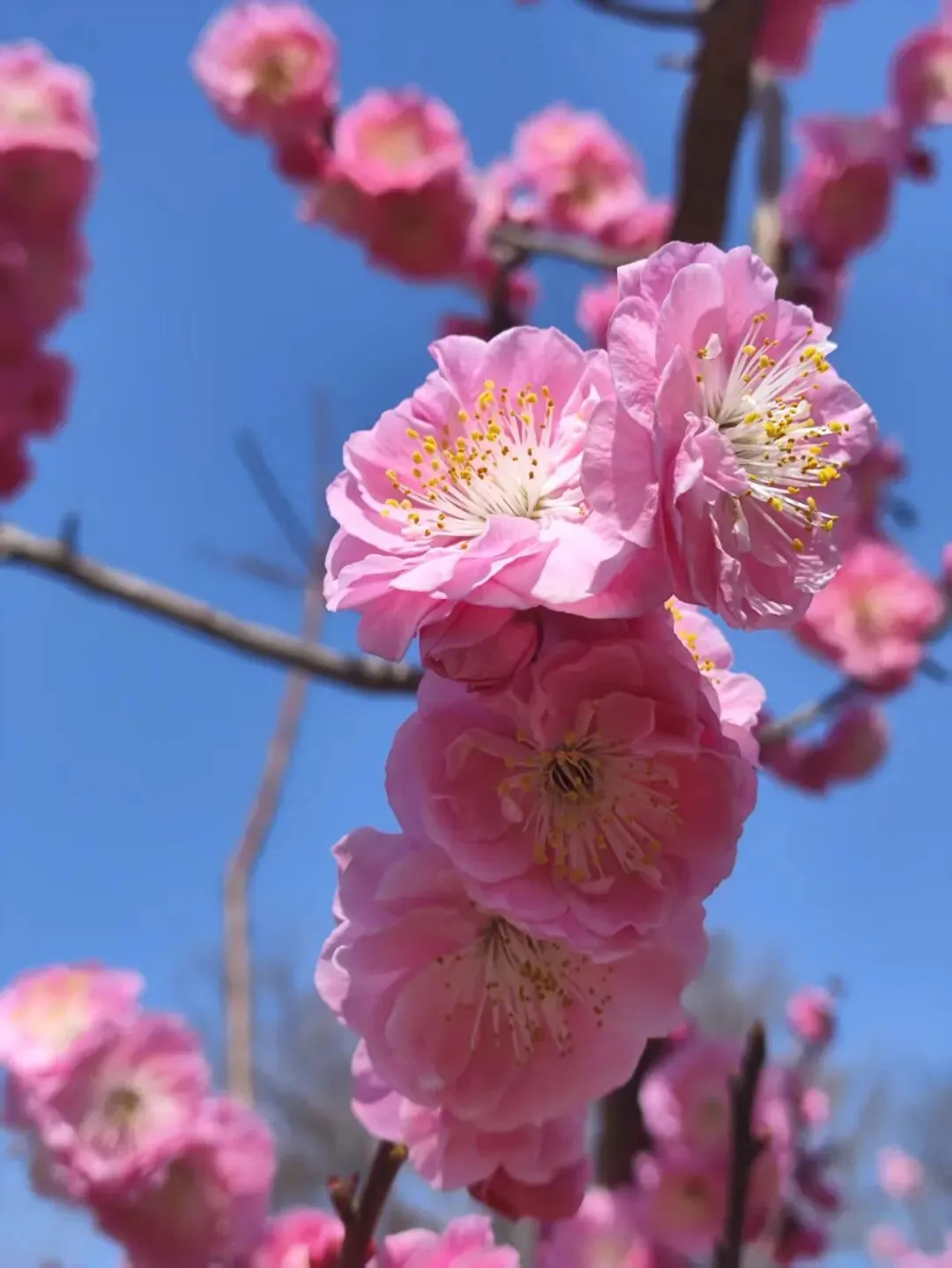 桃花朵朵,明媚鲜艳,开得热烈奔放。