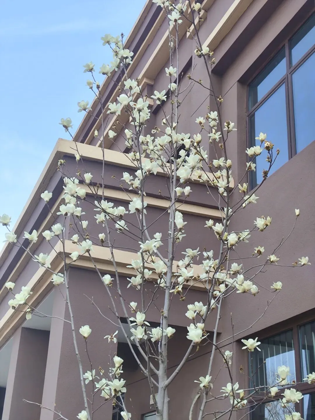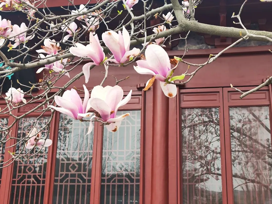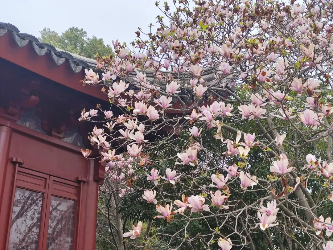 玉兰花或洁白如玉,或粉晕如霞,层层叠叠,清香扑鼻。