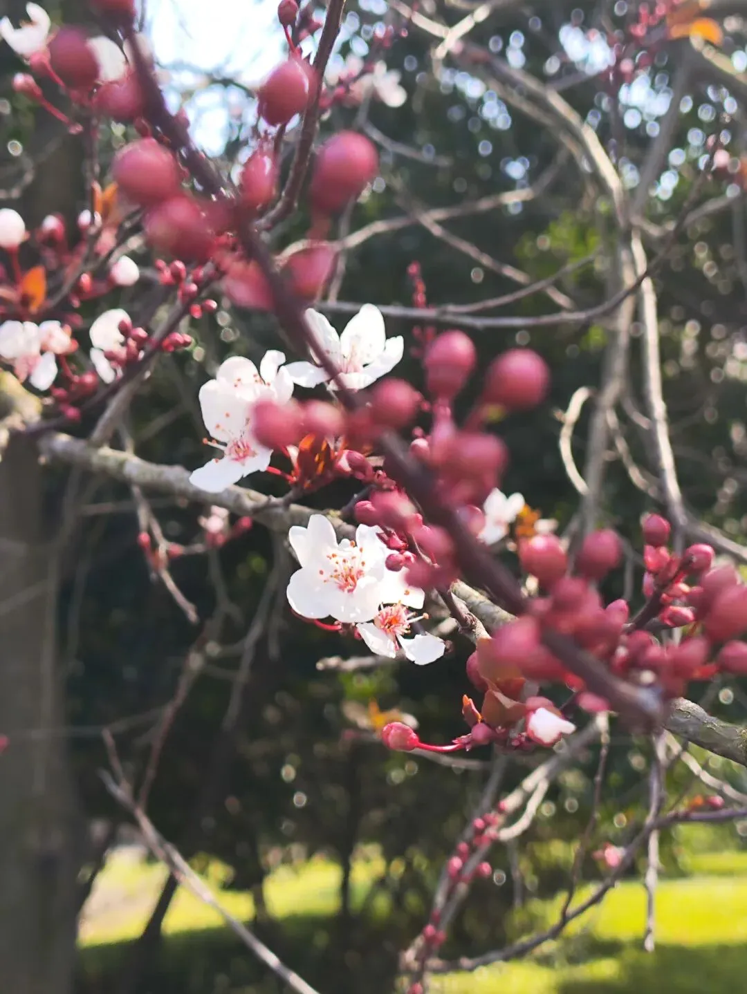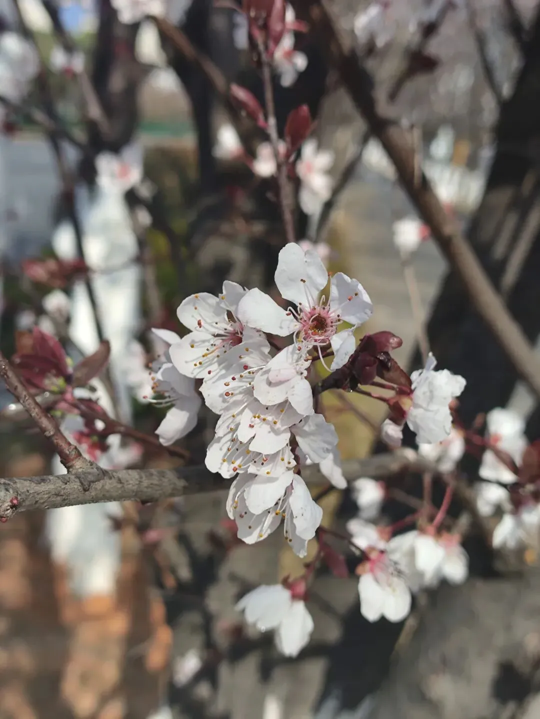 酷似樱花的紫叶李,花瓣没有裂痕,更为圆润,但在盛开的季节,同样缤纷美丽。