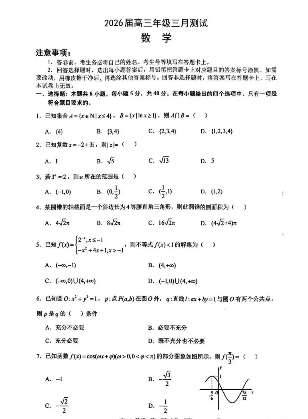 >2026年3月南昌一模-南昌市2026届高三年级三月测试试卷及答案