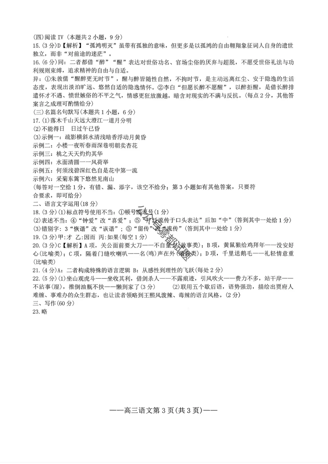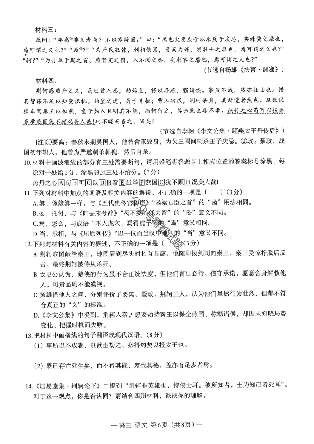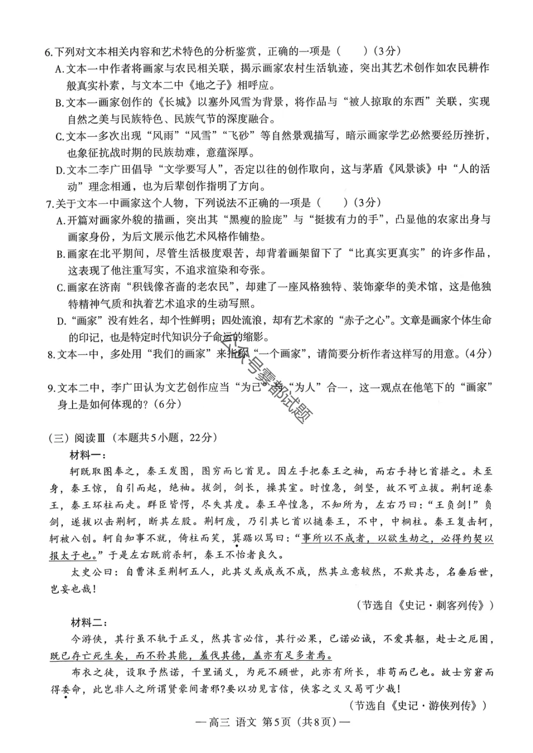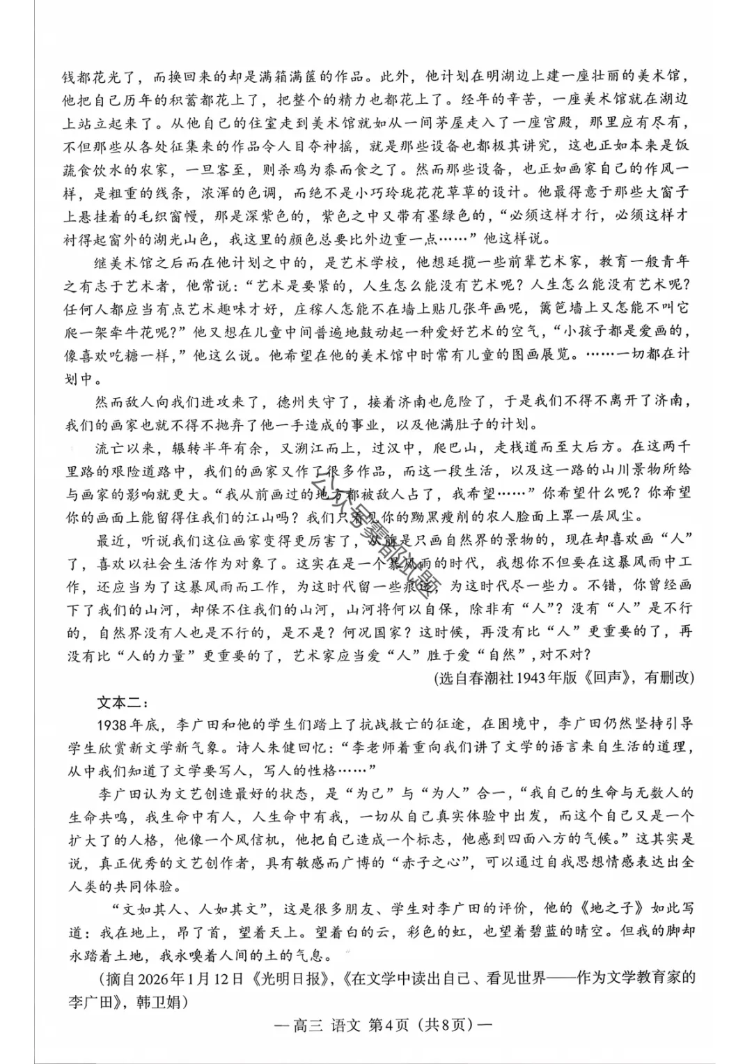 【南昌一模】2026届南昌市高三年级三月测试语文/数学试题及标准答案