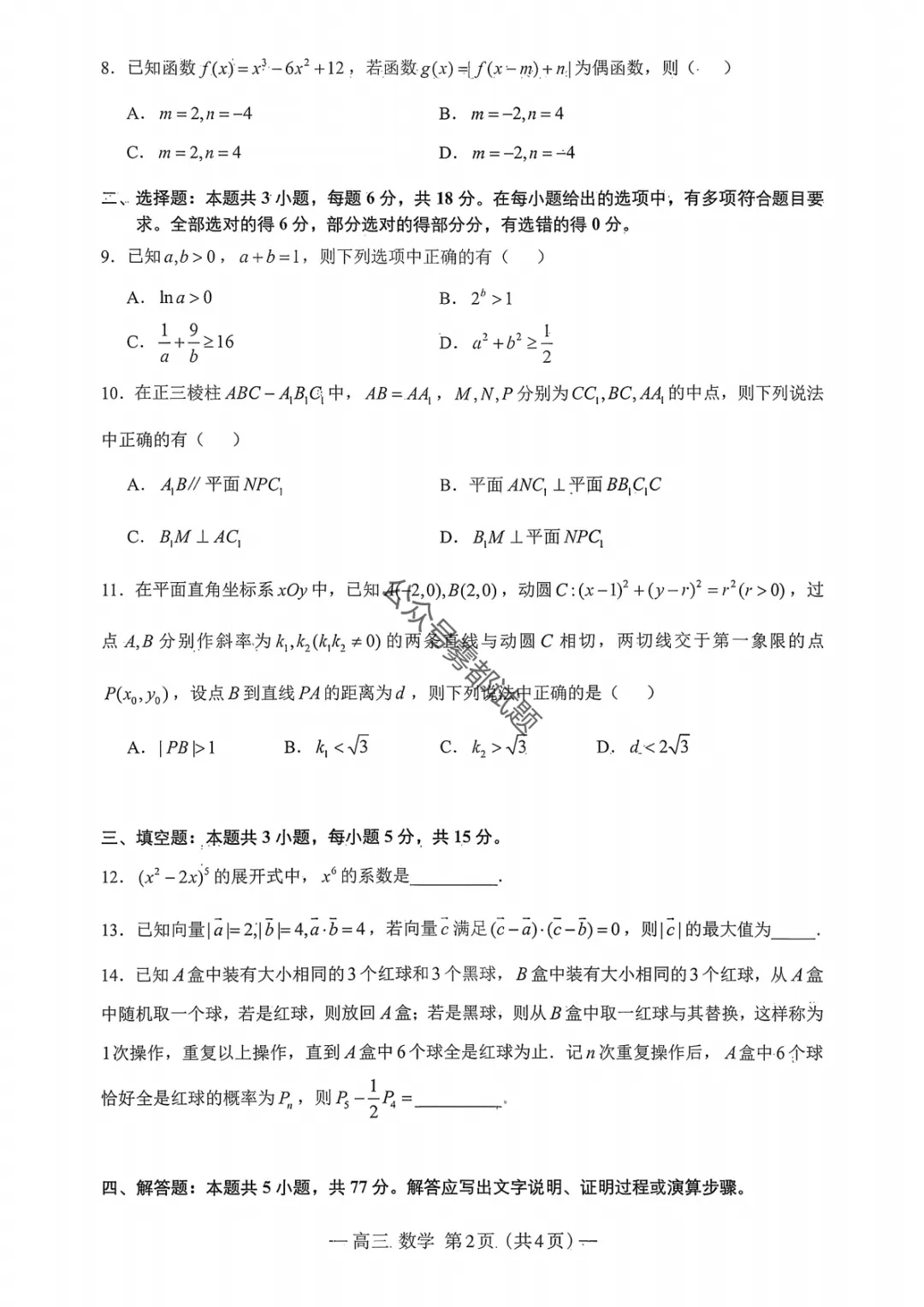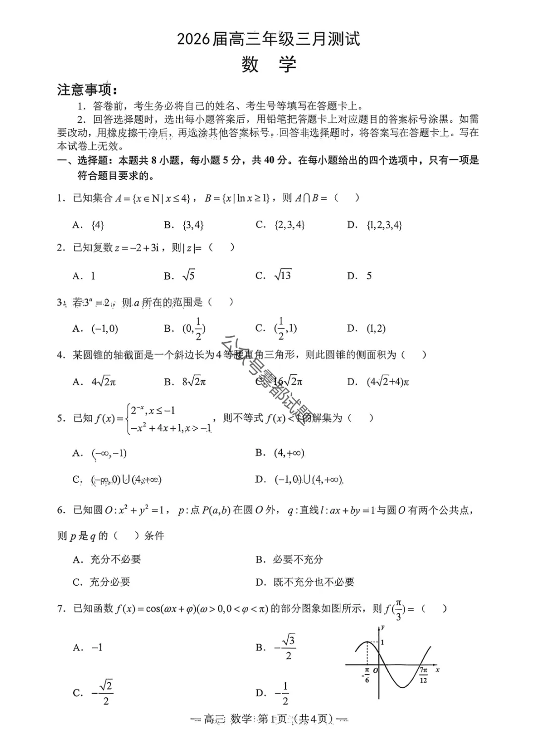 2026年3月南昌一模-南昌市2026届高三年级三月测试试卷及答案