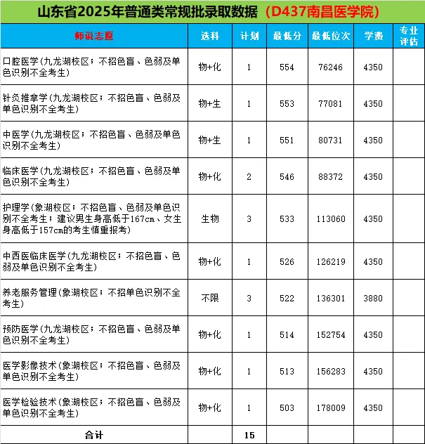 2025年南昌医学院在全国校友会排名517名,江西省校友会排名第27位。2025年在山东省普通类常规批招生专业最低录取分503分(178009)-554分(76246)。