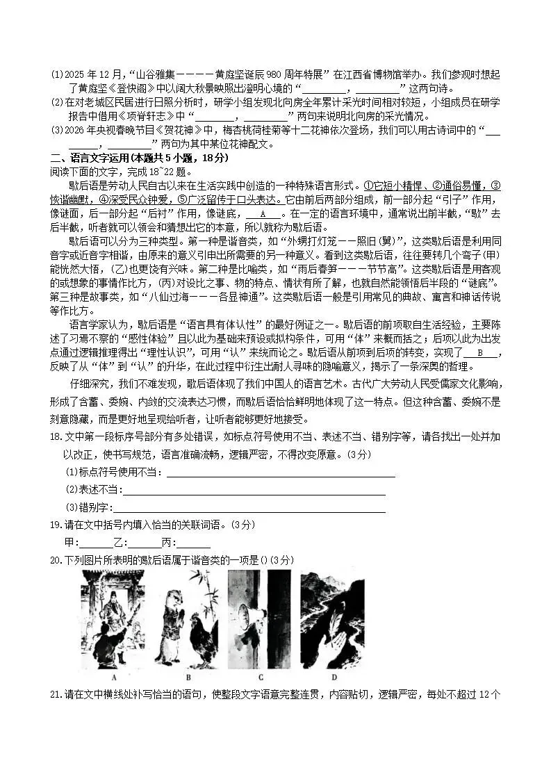江西省南昌市2026届高三下学期三月(南昌一模)测试