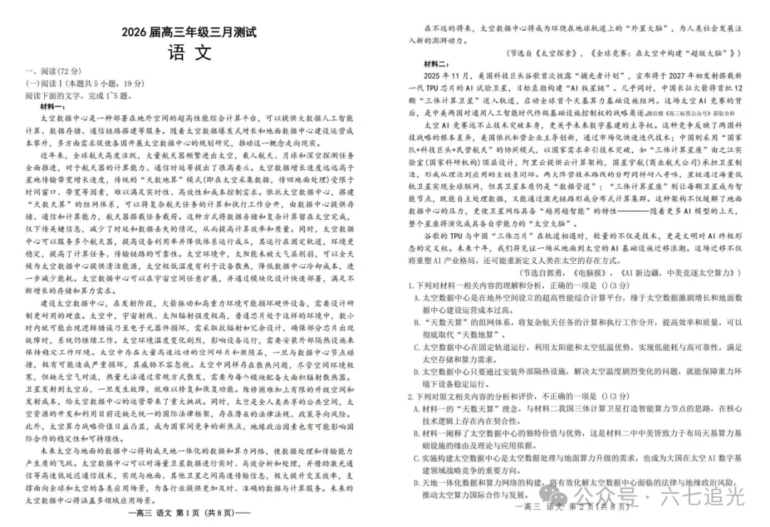 【南昌一模】江西省南昌市2026届高三年级三月测试试卷及答案解析【全科】(直接下载)