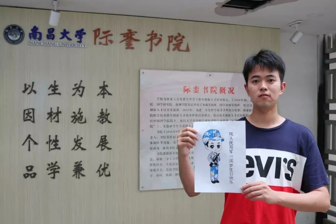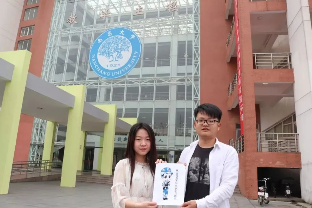 南昌大学各学院学生代表手持卡通手绘小昌海