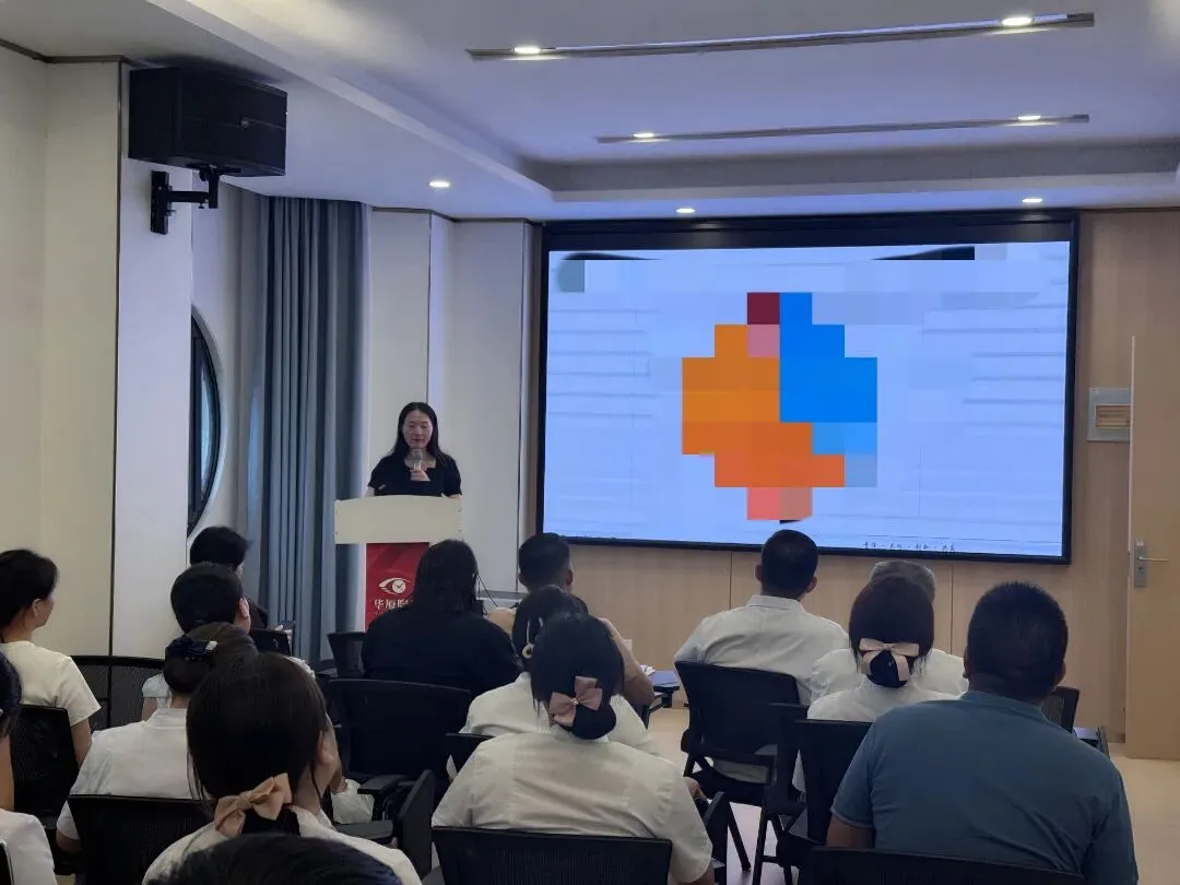 行政院长王淑华代表视光科作总结汇报,回顾了在学科在上半年取得的成效,并规划了提升专业服务能力与扩大影响力的具体路径。她还鼓励员工,人人开展自媒体,利用短视频、科普图文、直播等丰富形式提升内容创作能力。