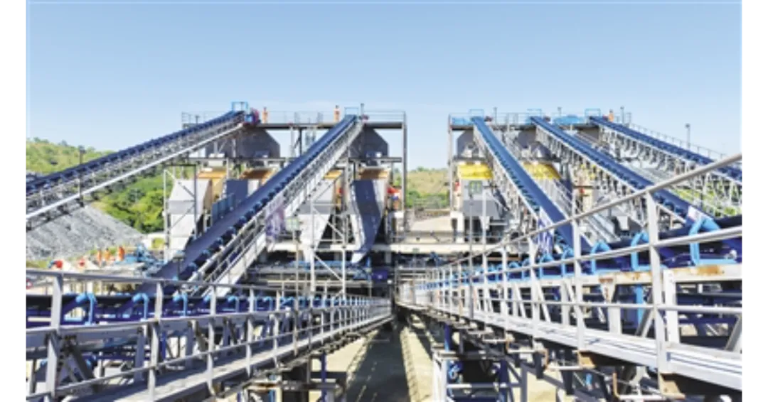 此次投产的2号砂石加工系统占地面积约11万平方米,以片麻岩开挖料为原料,设计处理能力达每小时855吨,月生产能力46.25万吨,是安哥拉迄今为止规模最大、技术最先进的砂石加工系统。系统核心设备由南矿集团提供,涵盖JC颚式破碎机、CC单缸圆锥破碎机、HS反击式破碎机、VS立轴冲击式破碎机、YKR圆振动筛、ZKR直线筛、WCD螺旋洗砂机、HPF棒条给料机、GZG振动给料机等近50台套设备,覆盖粗碎、中碎、细碎、整形制砂、洗砂等全流程作业。该系统可稳定生产6类成品骨料,充分满足大坝主体混凝土工程建设所需的砂石骨料供应需求。