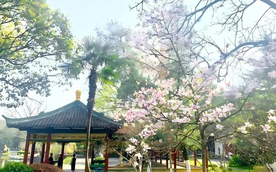 要说南昌人从小逛到大的公园,人民公园必须有姓名。这里的玉兰花开得恰到好处,粉白相间的花瓣,在红柱绿檐的映衬下格外清雅。汉服爱好者们,这里绝对是你们的出片宝藏地!📷