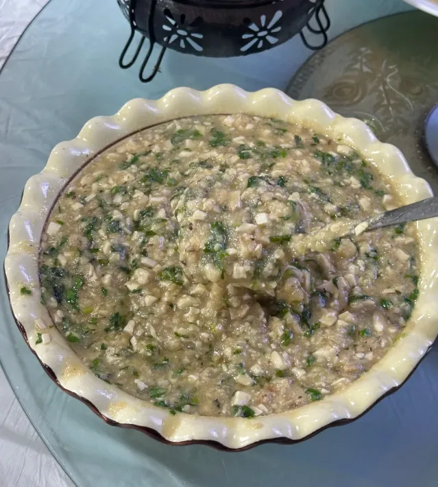 要说一道最能代表婺源做法的,我会选糊豆腐。豆腐先煎到表面微黄,再和香菇、肉末、笋丁一块煨,边煮边压,让豆腐慢慢化开,最后成一锅半汤半羹的样子。看着不起眼,喝一口,鲜味就顺着喉咙往下走,很熨帖。