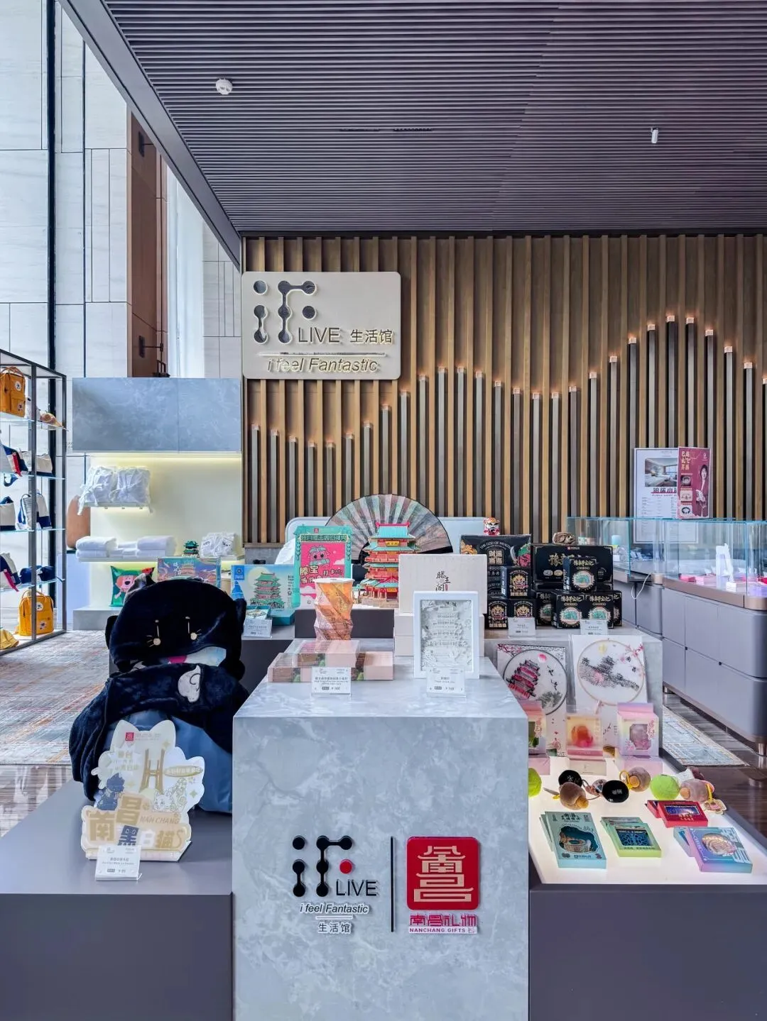去年,“南昌礼物”的布局越来越密。香格里拉、绿地铂瑞、喜来登3家酒店里,专柜与智能售卖机为住客提供一站式伴手礼服务;地铁八一馆站、八一广场站等人流密集的交通枢纽,9台智能售卖机连成一条流动的消费链路;肯悦咖啡绿地双子塔店的品牌联名概念店,让文创走进日常场景。