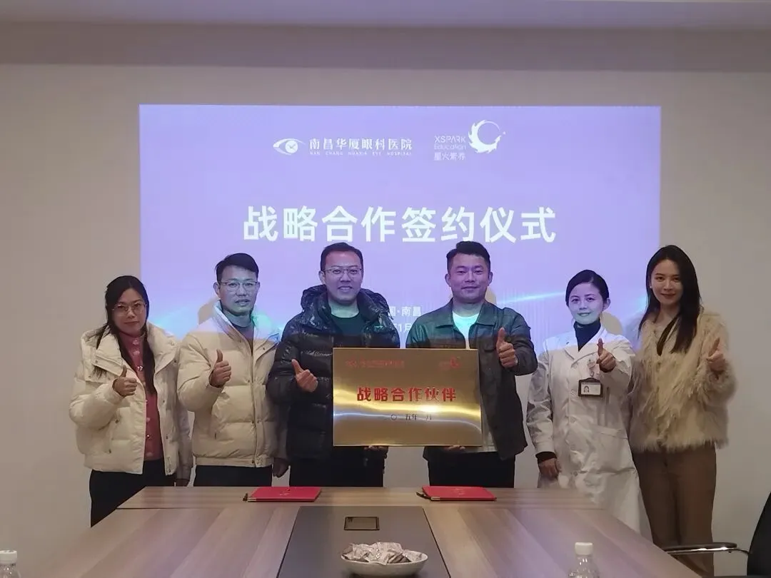 为充分发挥优质医疗资源带动引领作用,建立健全教育和医疗深度融合机制,加快推进教育医疗高质量发展,1月15日下午,我院与星火教育战略合作伙伴签约仪式顺利举行。南昌华厦眼科医院执行院长沈海,会员部主任张筠,会员部大客户经理张珂;星火教育素养中心南昌分公司总经理吴志伟、星火教育素养中心市场负责人宋六生、星火素养中心人力资源部张志芳共同参加本次签约仪式。