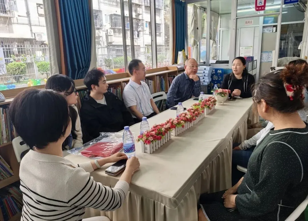 在温馨的座谈交流中,学校领导与正在园内进行教育实践的学生们围坐在一起,亲切交谈。领导们仔细询问了同学们的工作内容、住宿条件以及毕业论文的进展情况,并勉励大家要珍惜在优质幼儿园实践的机会,将在校所学的理论知识与一线教学实践紧密结合,努力提升专业技能,展现当代学前人的专业素养。