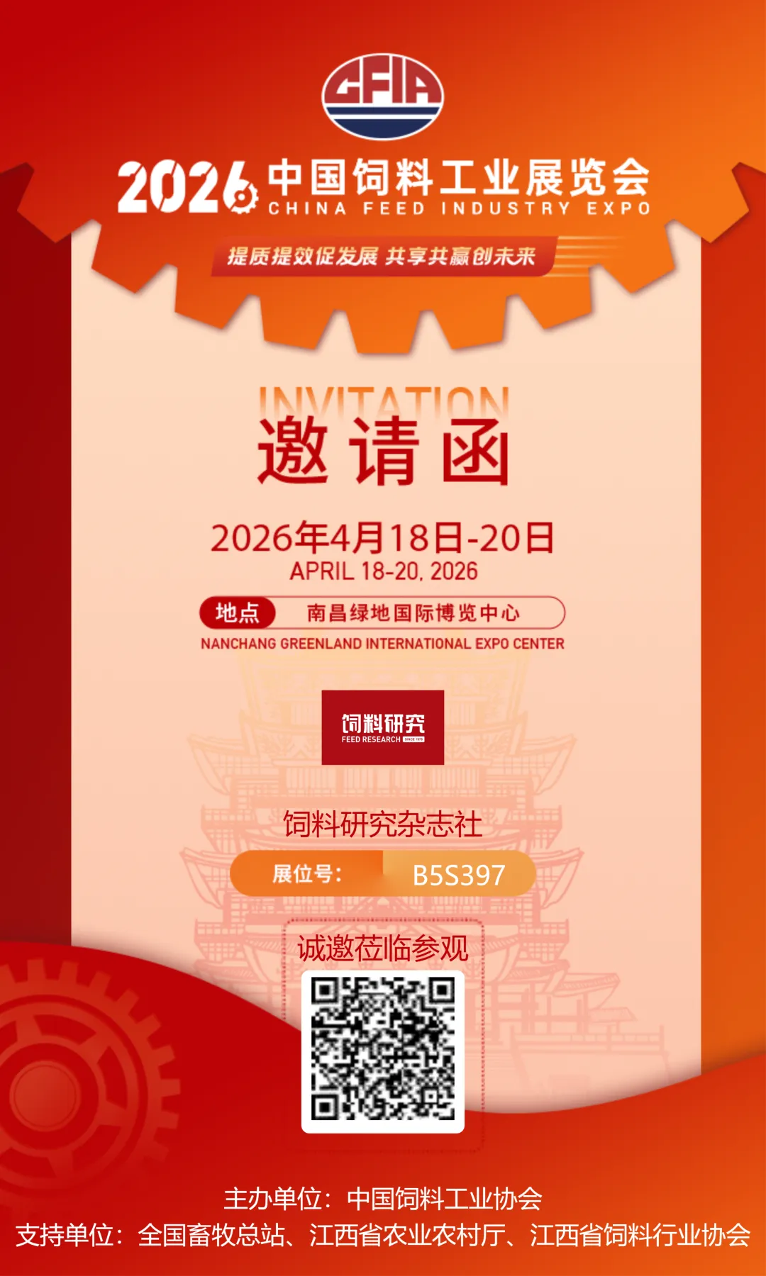 《饲料研究》邀您参加2026中国饲料工业展览会,我们在南昌绿地国际博览中心设有展位,展台位置在B5S397。