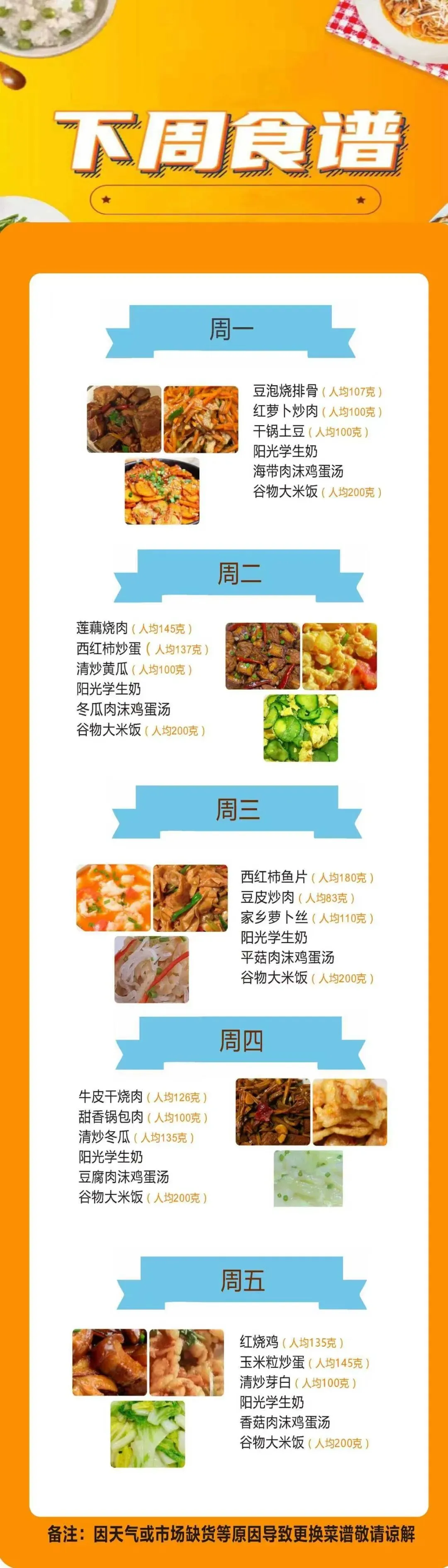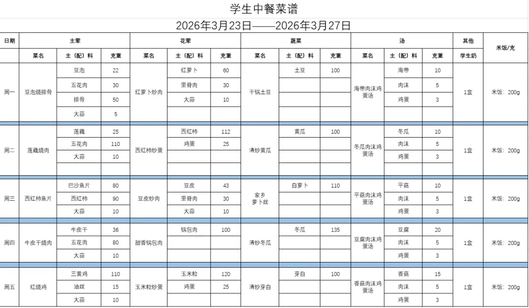>南昌市二十八中青云学校第四周(3月23日-3月27日)食堂食谱