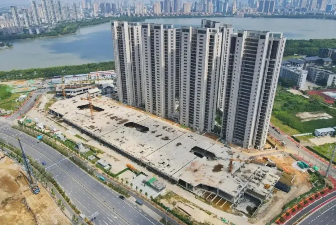 但距离拿地时隔将近9年,项目安置住房、商品房、公寓楼已陆续实现了交付,仅南侧规划为40层,高度为168.8米的超高层停工了。