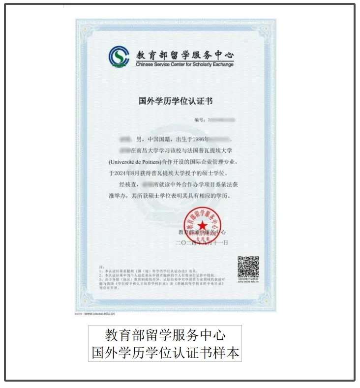 2025开始首届招生,修完规定的课程、成绩合格,完成毕业论文的撰写并通过答辩者,由普瓦提埃大学授予法国教育部颁发的国际企业管理硕士文凭(Master Management International)该文凭为法国国家文凭(Diplóme d'Etat),受世界各国承认,并可在中国教育部留学服务中心办理中外合作办学国外学历学位认证。
