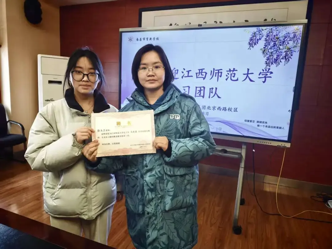 3月18日下午,南昌市育新学校教育集团北京西路校区举行江西师范大学见习生欢迎会暨师徒结对仪式。学校教导处副主任叶欣欣、江西师范大学小学教育学院带队教师朱爱军、14名江西师范大学小学教育学院本科见习生及校区全体指导教师共同参加本次活动。