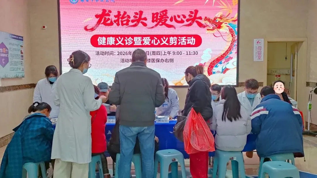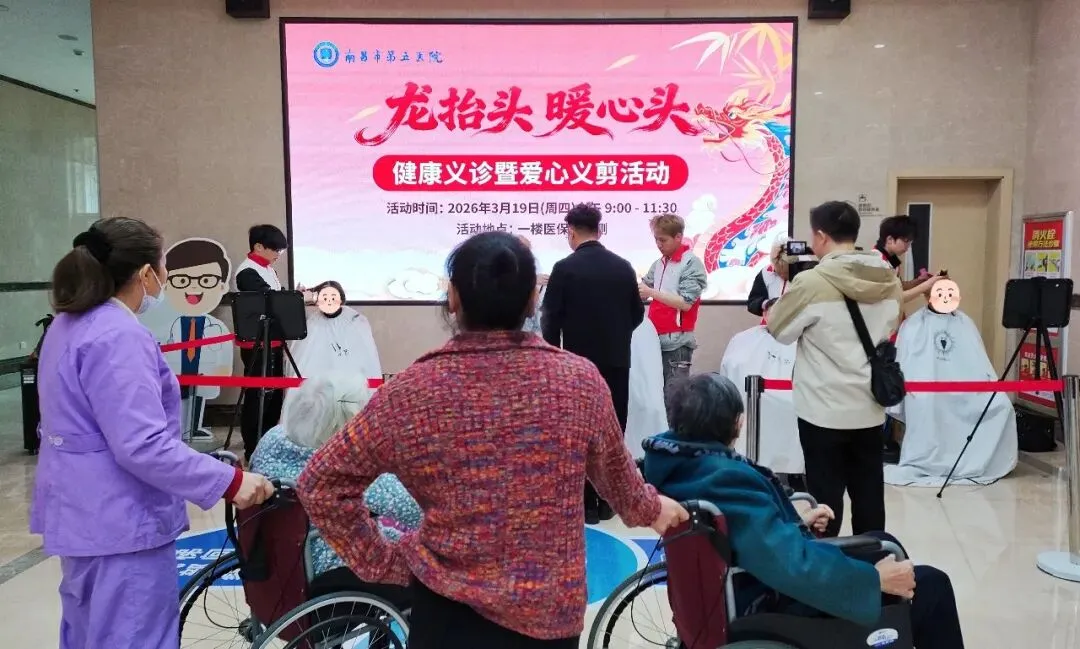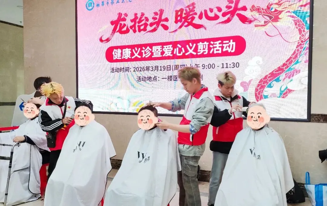 二月二,龙抬头,万物复苏,鸿运当头。在这个承载着美好寓意的传统节日来临之际,南昌市第五医院特别举办了“龙抬头 暖心头”健康义诊暨爱心义剪公益活动,旨在弘扬传统文化,同时为来院病友、住院病友及家属送上实实在在的关怀。活动特别邀请了南昌玮艺美发美容职业培训学校的志愿者,为病友和家属提供免费理发服务,让大家在焕新发型的同时,也能收获一份健康守护,以崭新的面貌和健康的身体重“头”出发,迎接春天的美好。