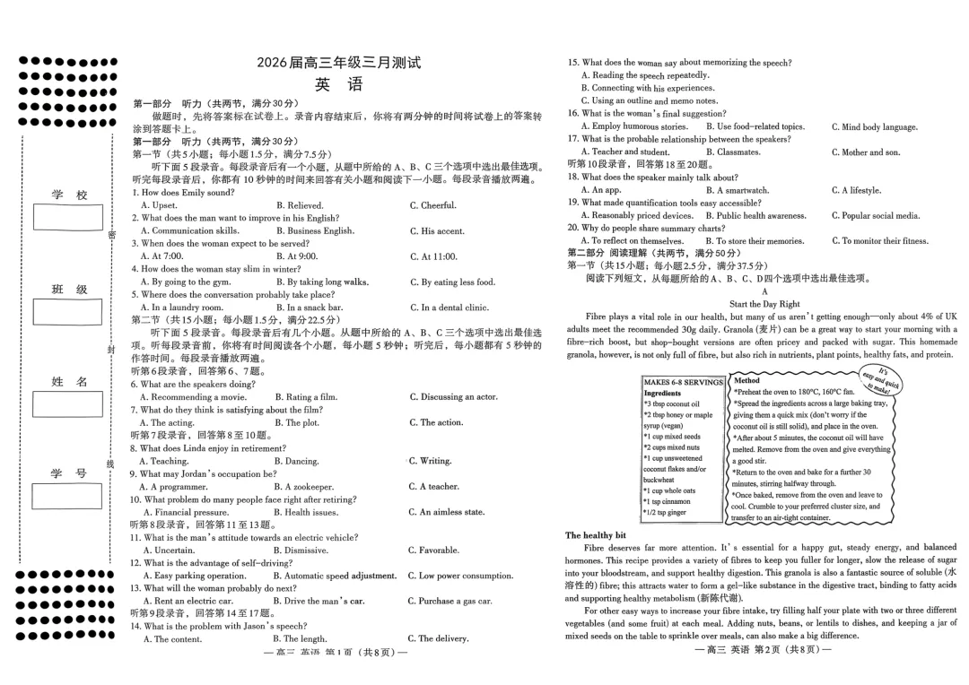 2025年全国新高考1卷含听力和答案