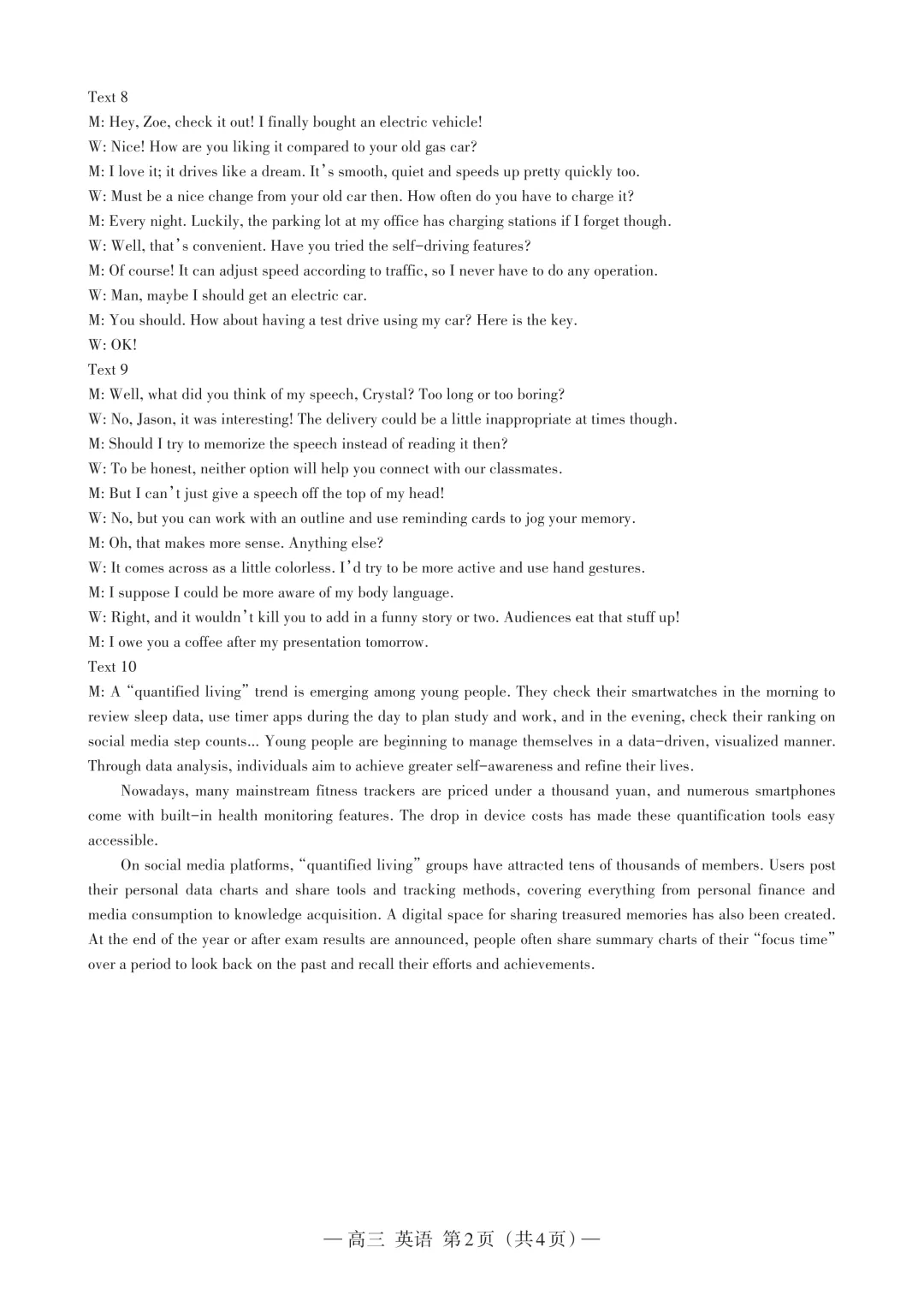 2024年全国新高考英语2卷听力以及听力原稿