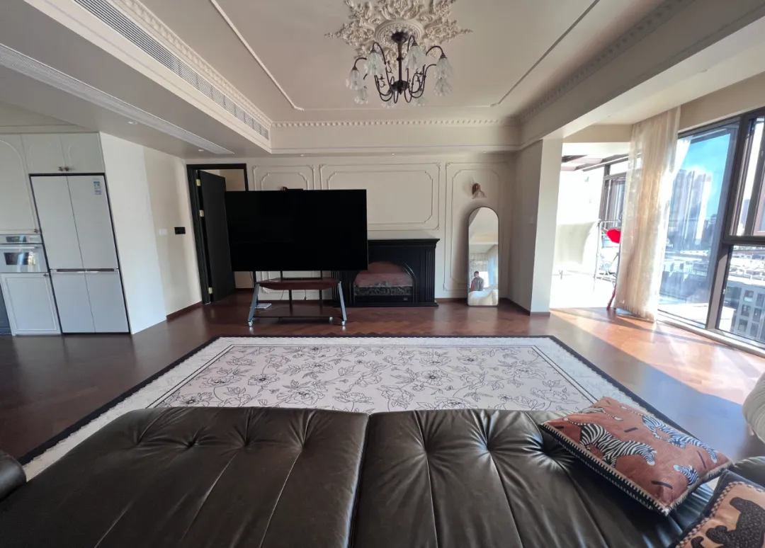 夜晚想窝在沙发上看部电影?只需一声指令,主灯缓缓熄灭,四周筒灯渐暗至15%,只留下背景墙的暖色灯带和壁炉旁的微光。2700K的暖黄光像月光一样洒在人字拼地板上,营造出私密的影院氛围。