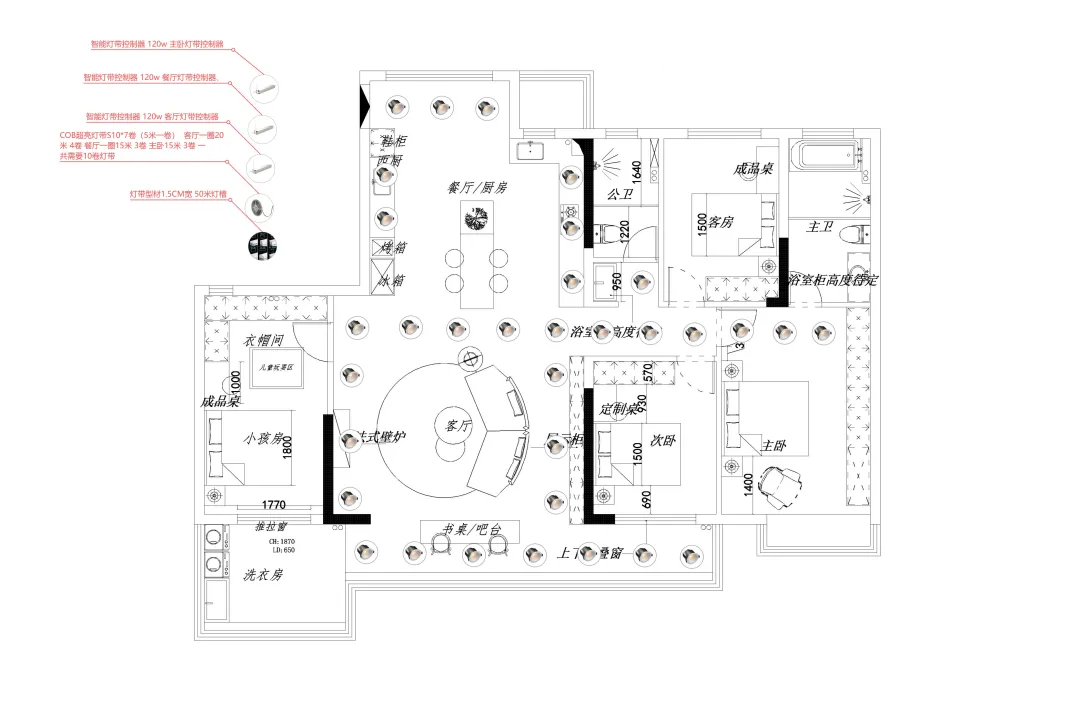 多回路独立控制:吊灯、筒灯、灯带、壁灯均可单独调节亮度/色温。