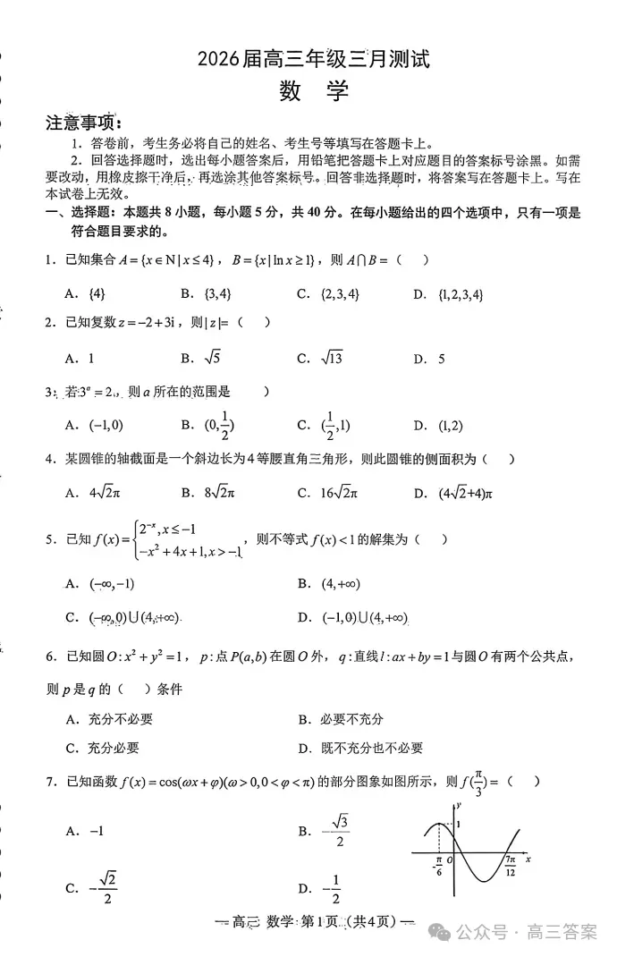 >【南昌一模】南昌2026届高三年级三月测试下载