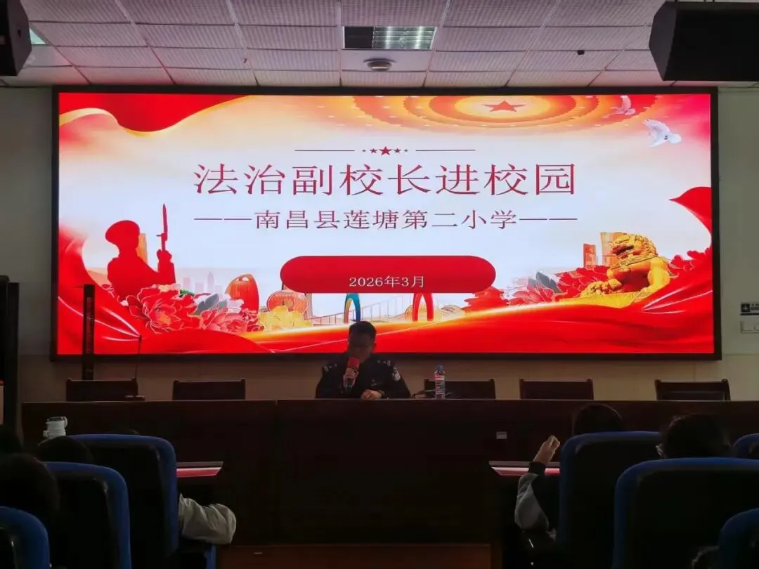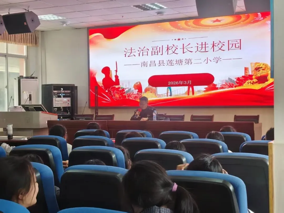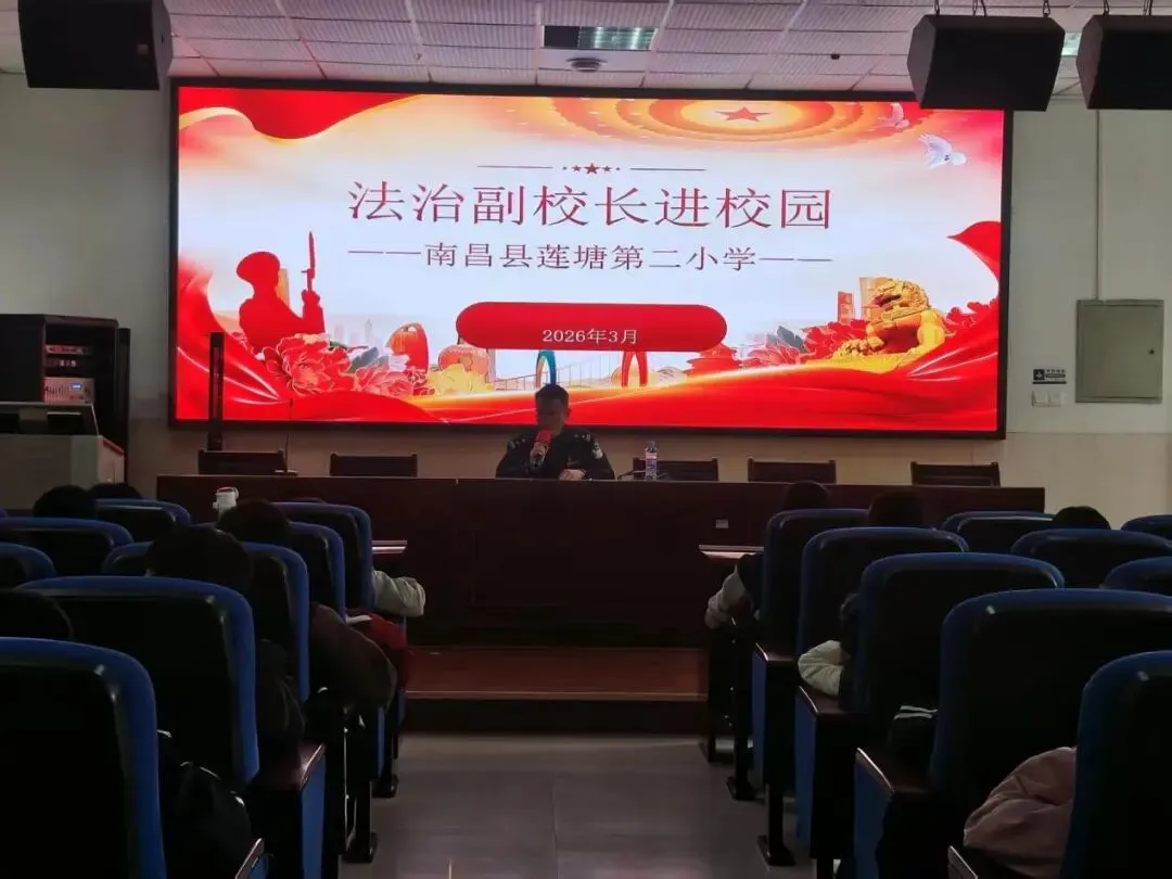 为深入推进法治校园建设,增强学生法治观念与自我保护意识,2026年3月19日,南昌县莲塘第二小学特邀法治副校长、南昌县公安局胡俊华警官进校园,开展法治专题讲座。
