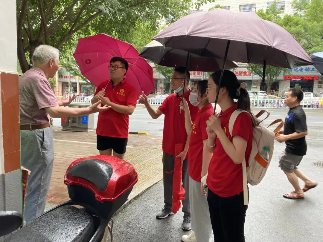 服务队在对社区居民进行党史理论宣讲和调研