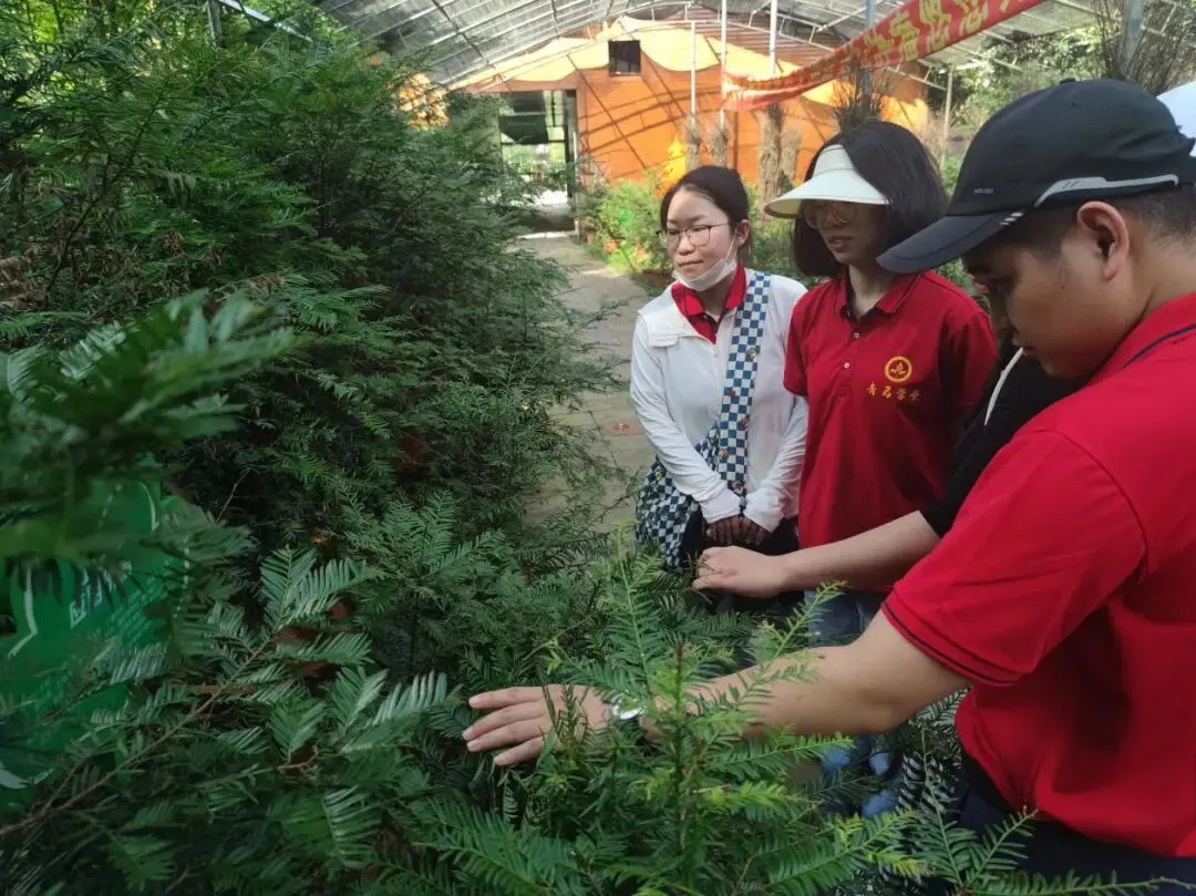 服务队近距离观察调研红豆杉生长情况