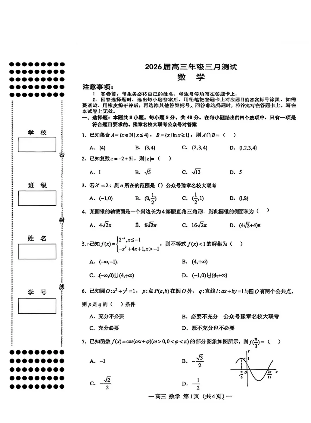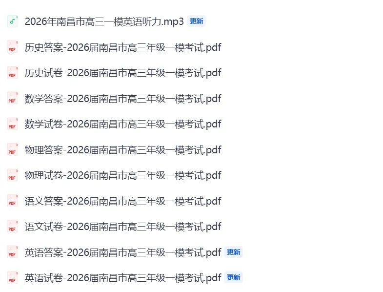 2026届南昌市高三年级一模考试(实时更新)