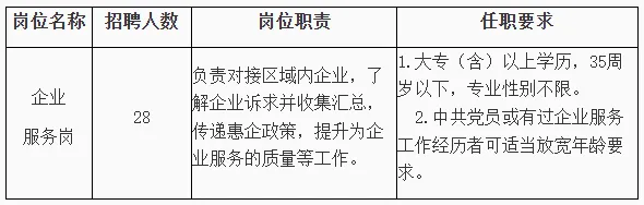 因业务发展需要,南昌县小蓝经开区项目招聘外包性质企业服务人员28名,具体公告如下: