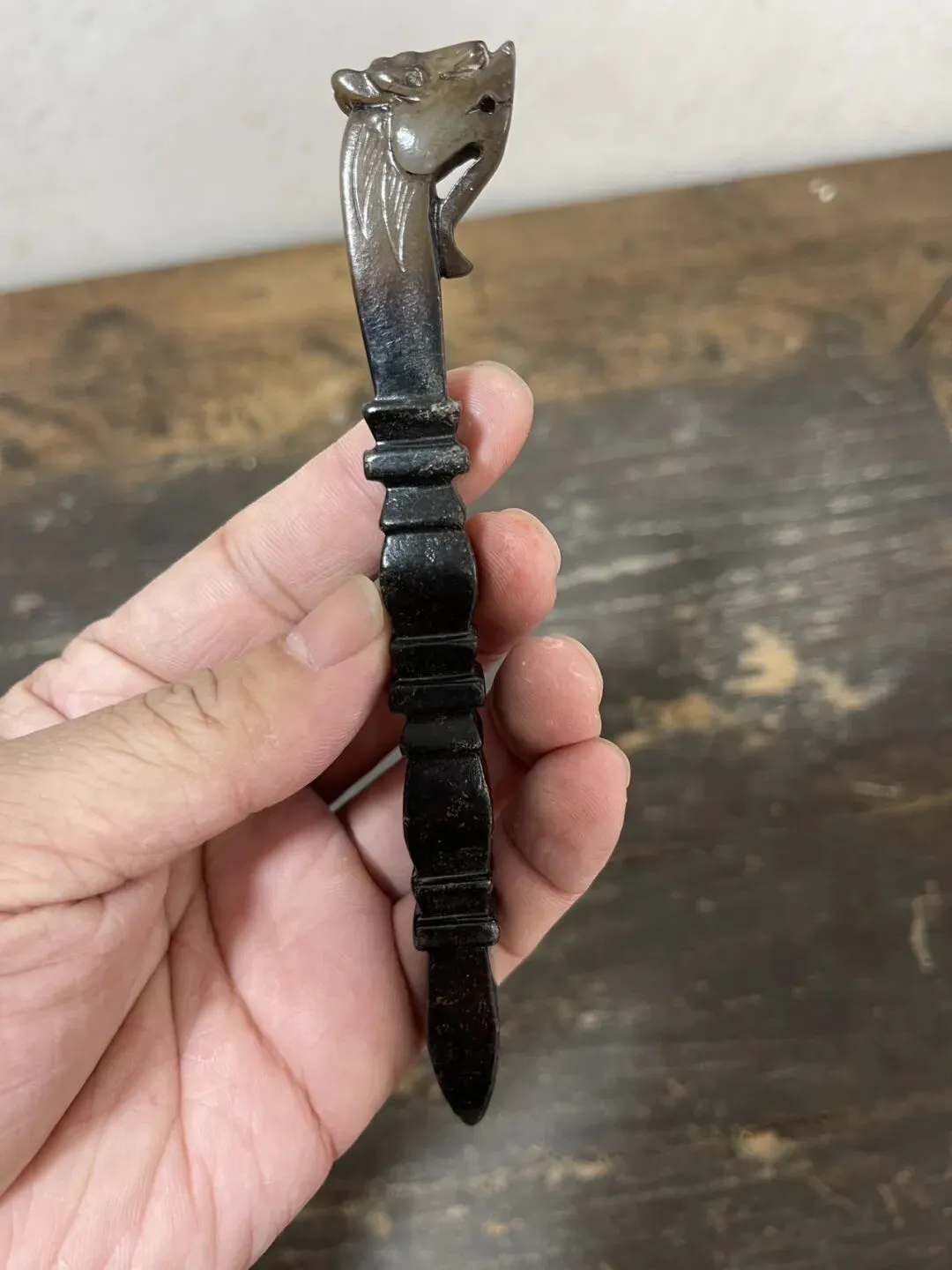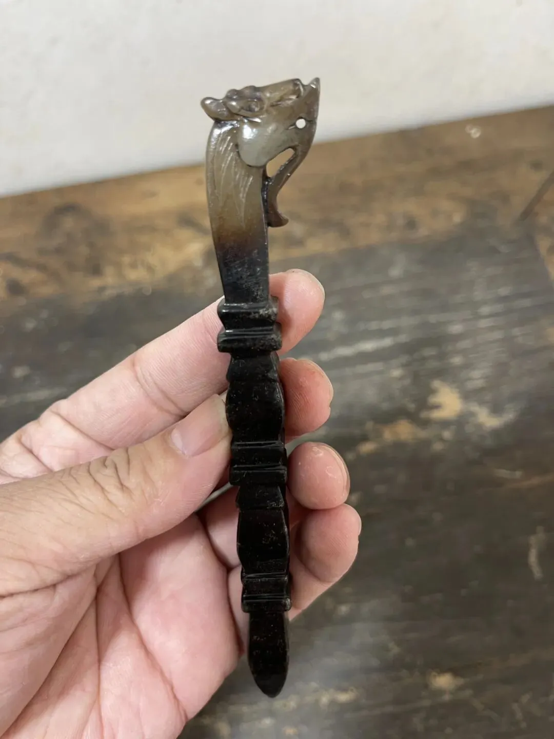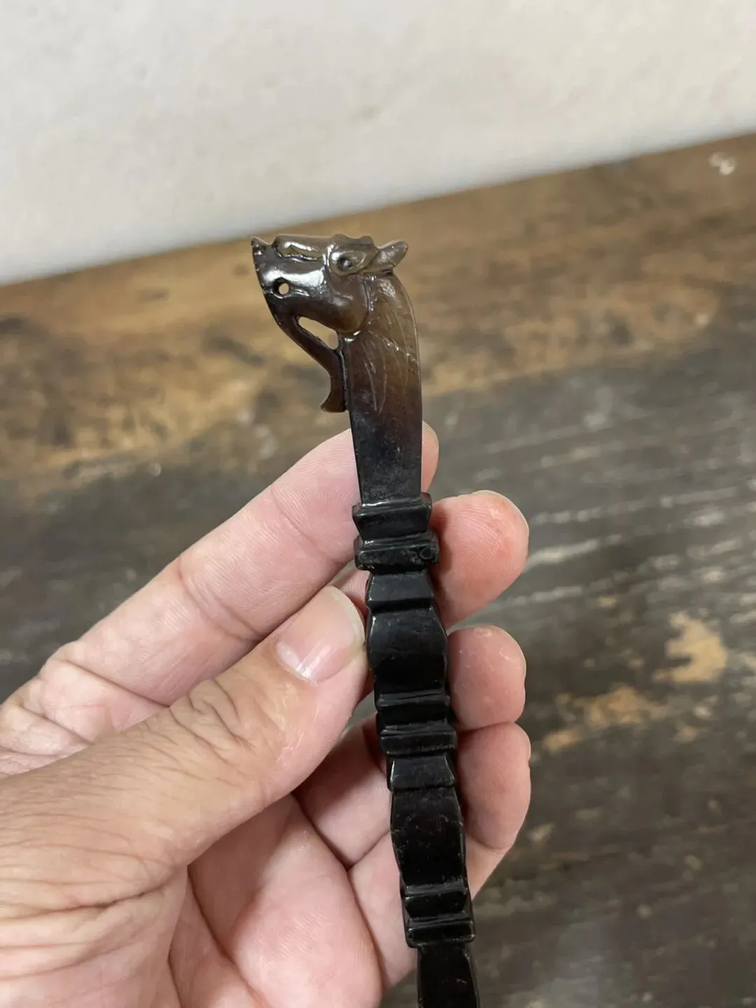 这件器物最贴切的说法应该叫:龙首竹节玉书拔,更为贴切,也可称为龙头节节高玉茶拔,一般用于文房茶道形制。
