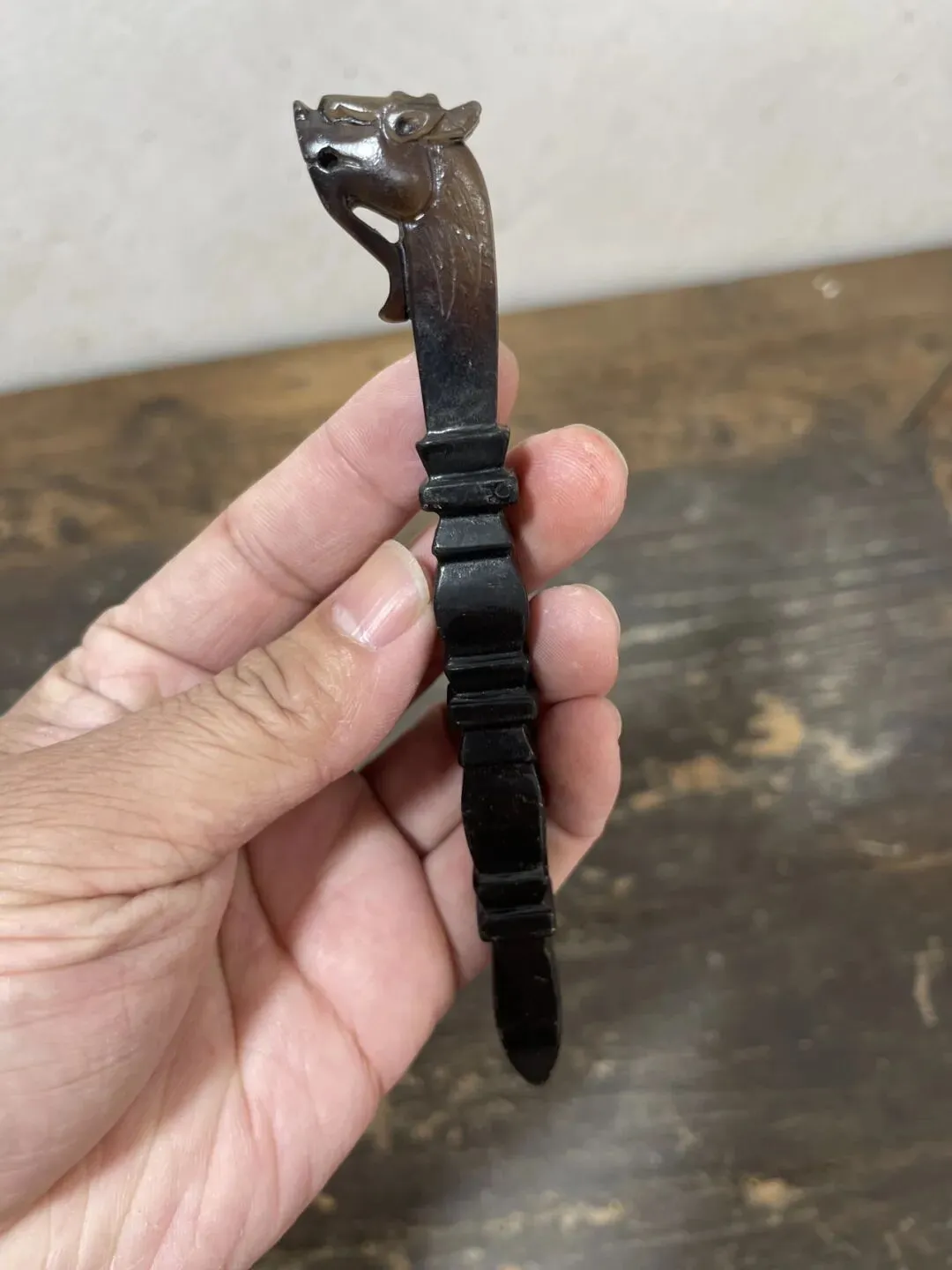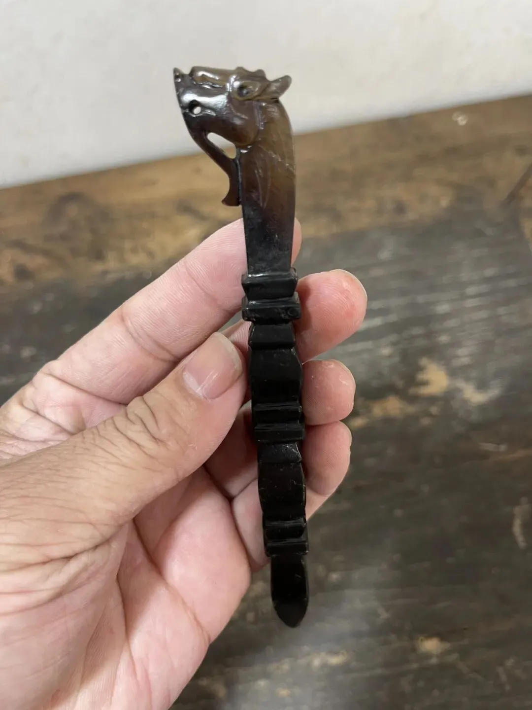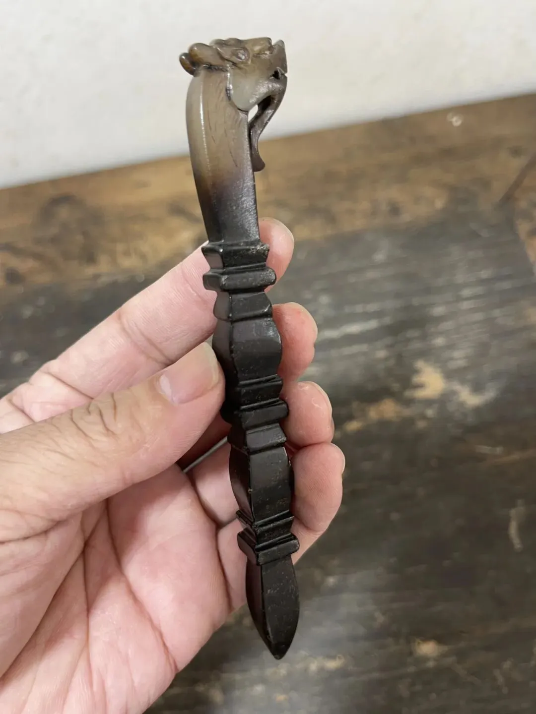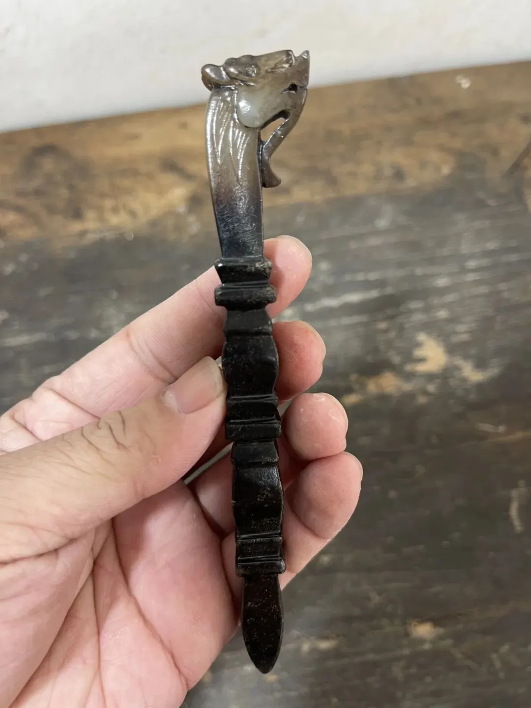 这件器物最贴切的说法应该叫:龙首竹节玉书拔,更为贴切,也可称为龙头节节高玉茶拔,一般用于文房茶道形制。