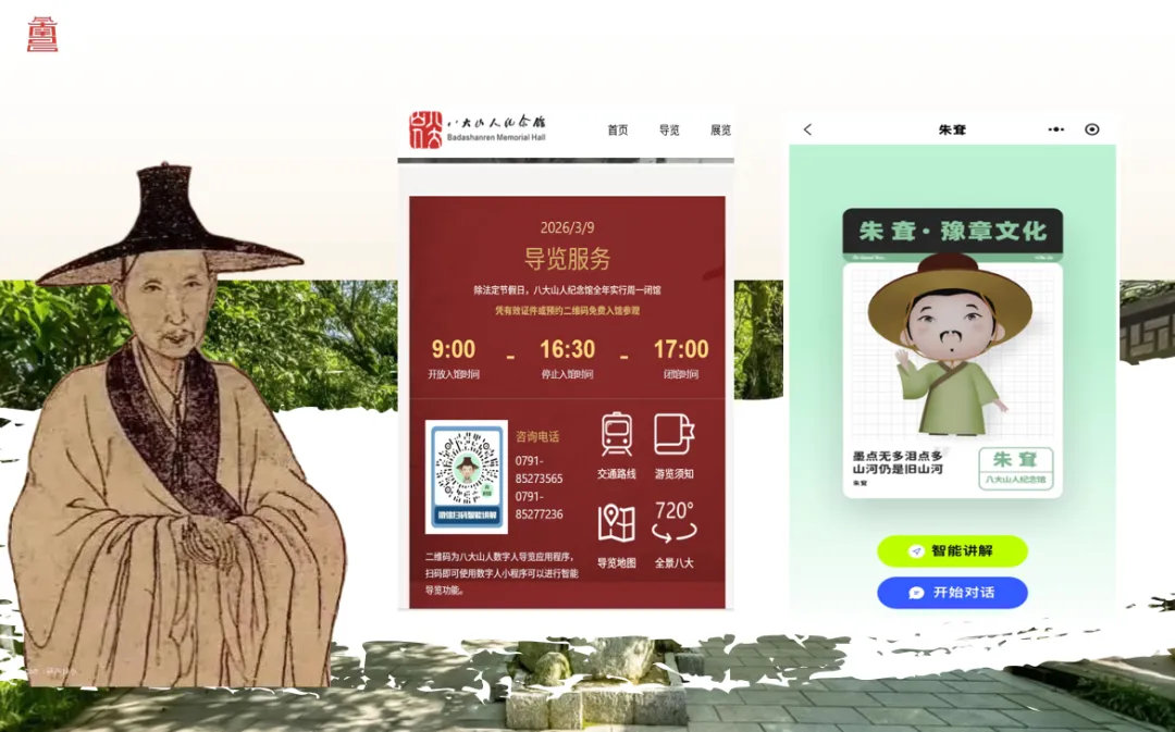 在欣赏书法作品时,教材中有一幅《行书五绝诗轴》,是八大山人晚年的精品。学生看不懂书法内容,如果由老师直接告诉学生写了什么,那多无趣啊!“小松果”已经对《墨荷图》进行了赏析,再请“小松果”讲解很难再激发学生兴趣。有趣的是,我带着这个问题进入梦乡时,在梦中居然想到了办法:让学生询问“豆包”!醒来后,我又进行了优化:不需要引进“豆包”,在八大山人纪念馆的网站上有一个数字人朱耷,可以请学生与他直接互动,增强课堂的趣味性。