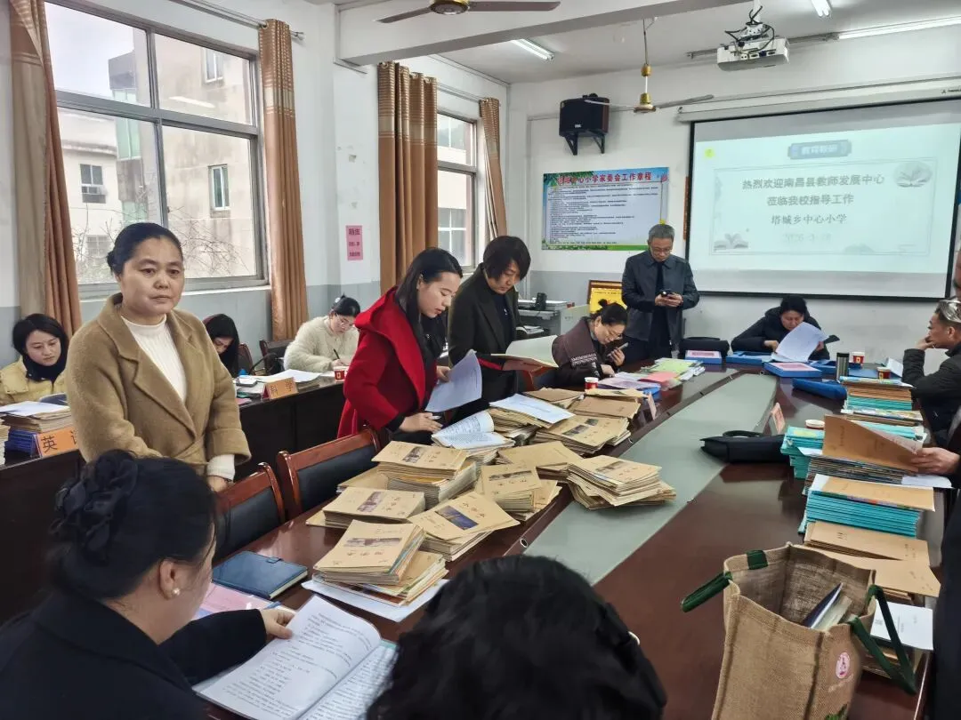 为进一步规范学校教育教学管理,夯实教学常规根基,精准把脉课堂实效,近日,南昌县教师发展中心教研员团队一行莅临塔城乡中心小学,开展全方位、深层次的教学常规视导工作。教研员们通过随堂听课、教学常规资料查阅、素质检测、集中反馈等形式,对我校教学常规落实、课堂教学实效、教研活动开展等工作进行全面“体检”与专业指导。
