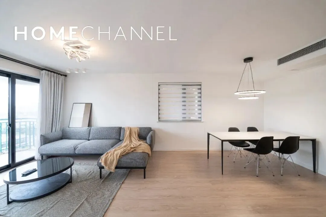 位于南昌路555号【东方巴黎】靠近陕西南路,梧桐区老牌豪宅之一,高区面积138平的3房2厅2卫,价格32000元/月,现代简洁的室内设计,全景落地窗,高区视野无遮挡,户外景观阳台可看城市美景,空间采光很棒,配有中央空调、地暖等;毗邻环贸,地铁1.10.12线陕西南路地铁站,出行方便。房屋3月底到期,欢迎提前来预约!Joffrey Garden is located on NanChang Rd NO.555 in the XuHui District,nearby IAPM.with central A/C、floor heating、balcony and so on.The main house has 3 bedrooms and 2 bathrooms with size 138㎡ and Price 32000RMB/Month. It's well designed with modern and simple style interior decoration,and this is a comfortable place to live.▼现代舒适、采光很棒的客餐厅
