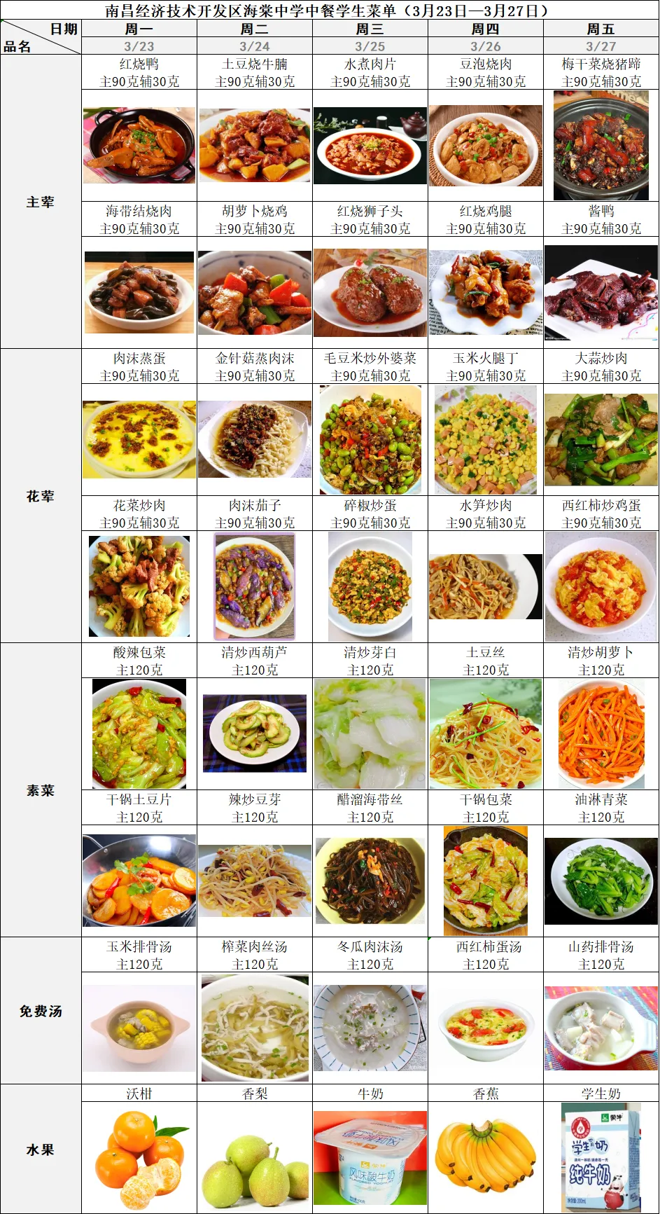 南昌二中经开校区一周食谱公示(3.23-3.27)