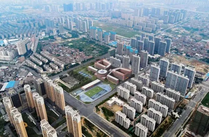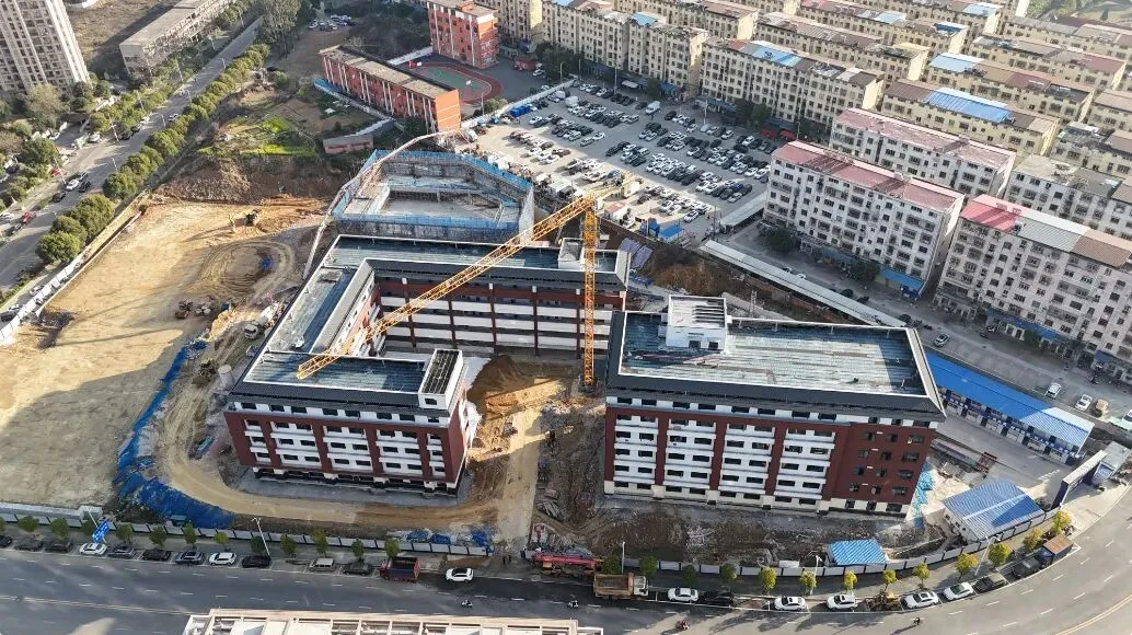 项目教学楼已封顶,3栋楼拆除爬架,即将进行外立面施工,预计2026年下半年投用。学校占地约45771㎡,规划39班(小学24班、初中15班),可提供1830个学位,建成后将缓解广州路片区就学压力——