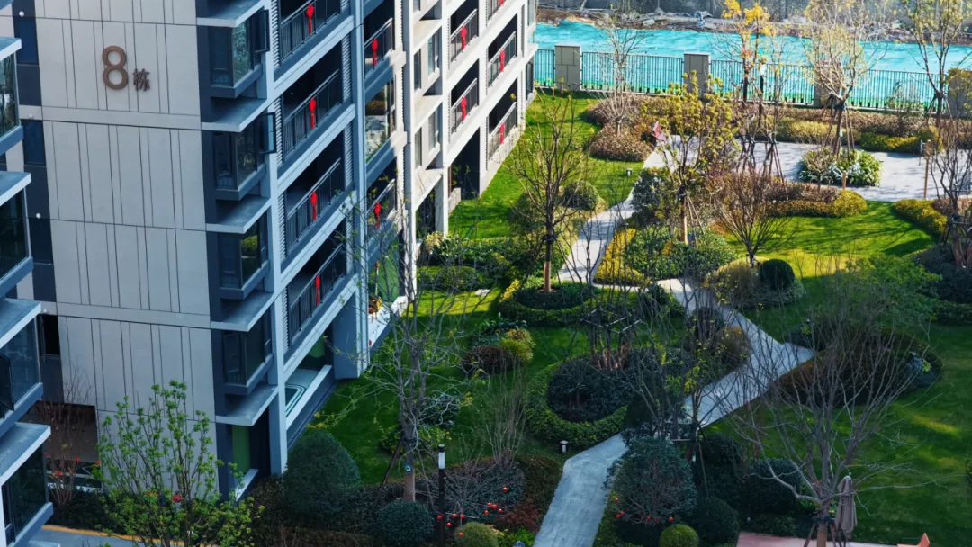 从位置上看,5栋立于西地块中轴正席,四面园林环抱。南向正对乌桕林为主景的核心中庭,北瞰组团花园,东西两侧亦被绿意簇拥。推窗即景,四季风华尽收眼底。