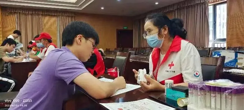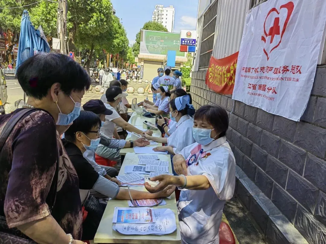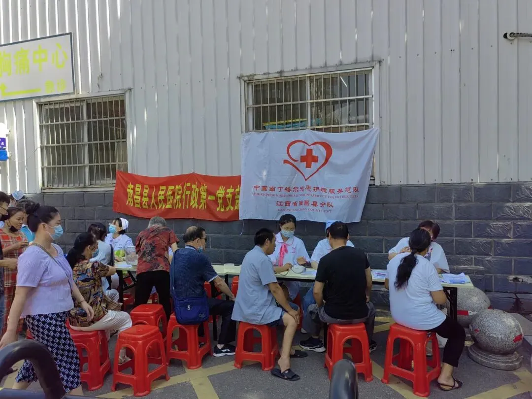 7月1日上午,南昌县南丁格尔志愿服务队组织7名志愿者来到莲塘镇向阳路开展“庆七一,迎二十大”健康义诊活动,用实际行动迎接党的生日和党的二十大召开。