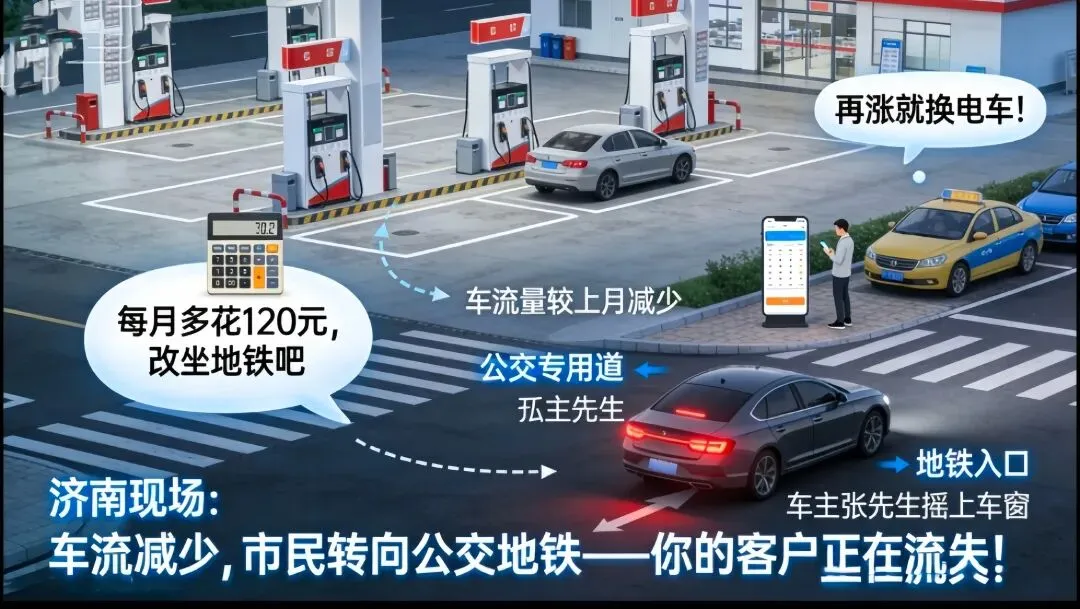 然而,比涨价更值得关注的,是两座城市正在上演的“分化剧情”——南昌的车主已经开始囤油,济南的车流却在悄悄减少。这背后,藏着高油价周期下,加油站经营的“危”与“机”。